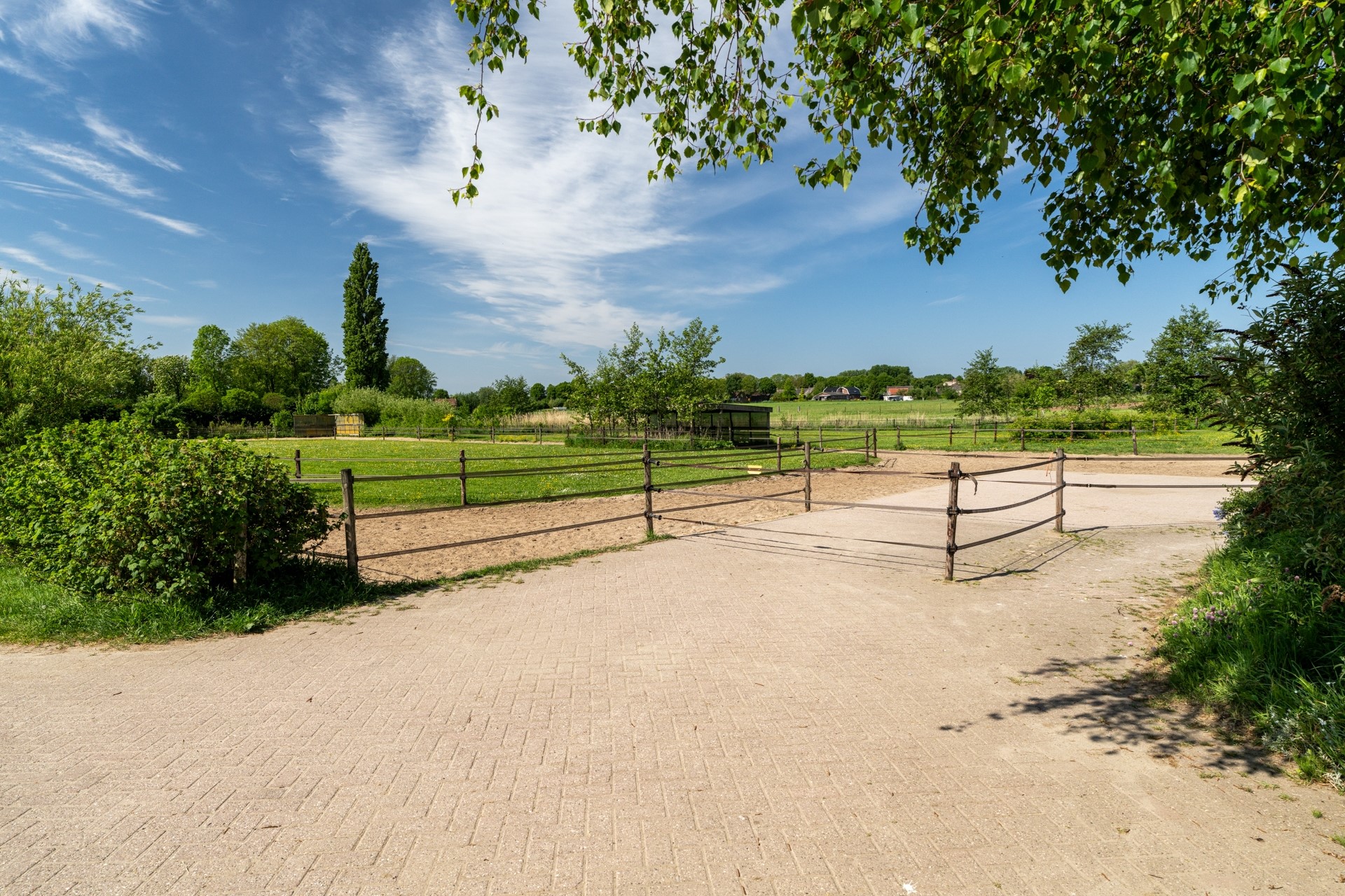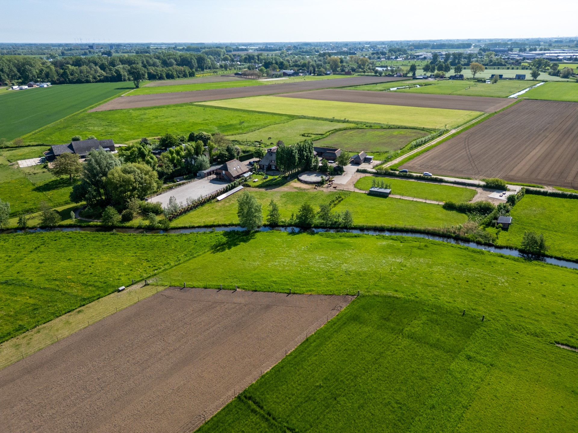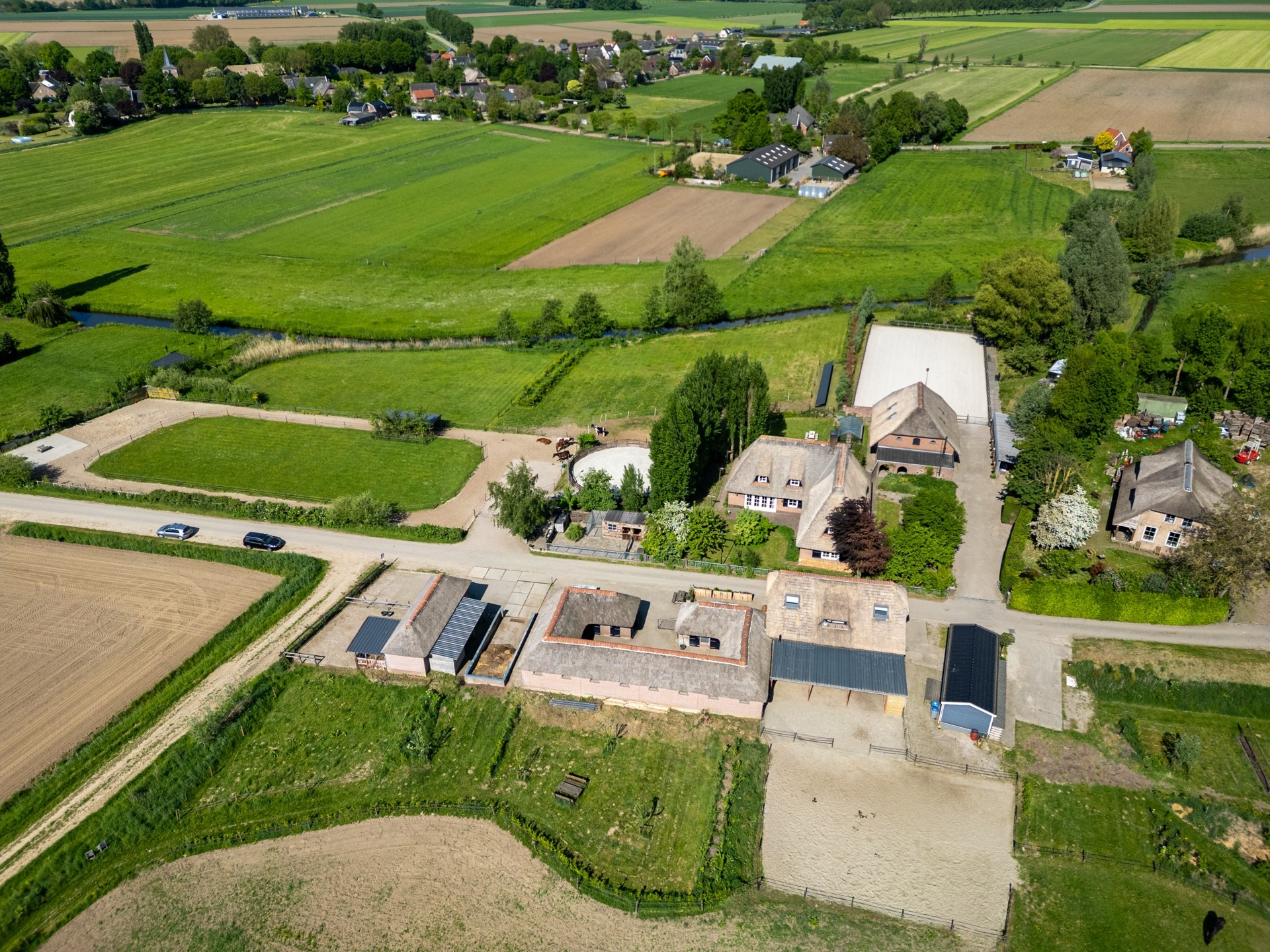 Direct aan de overzijde van de straat staan diverse gebouwen waaronder een hoofdgebouw, carré-vormig stallencomplex met geheel verharde binnenplaats, een overkapping voor de paarden met aansluitend een paddock, vrijstaande hooiopslag, quarantaine-weide met stal en diverse beweidingszones omgeven door natuur en wandelpad.