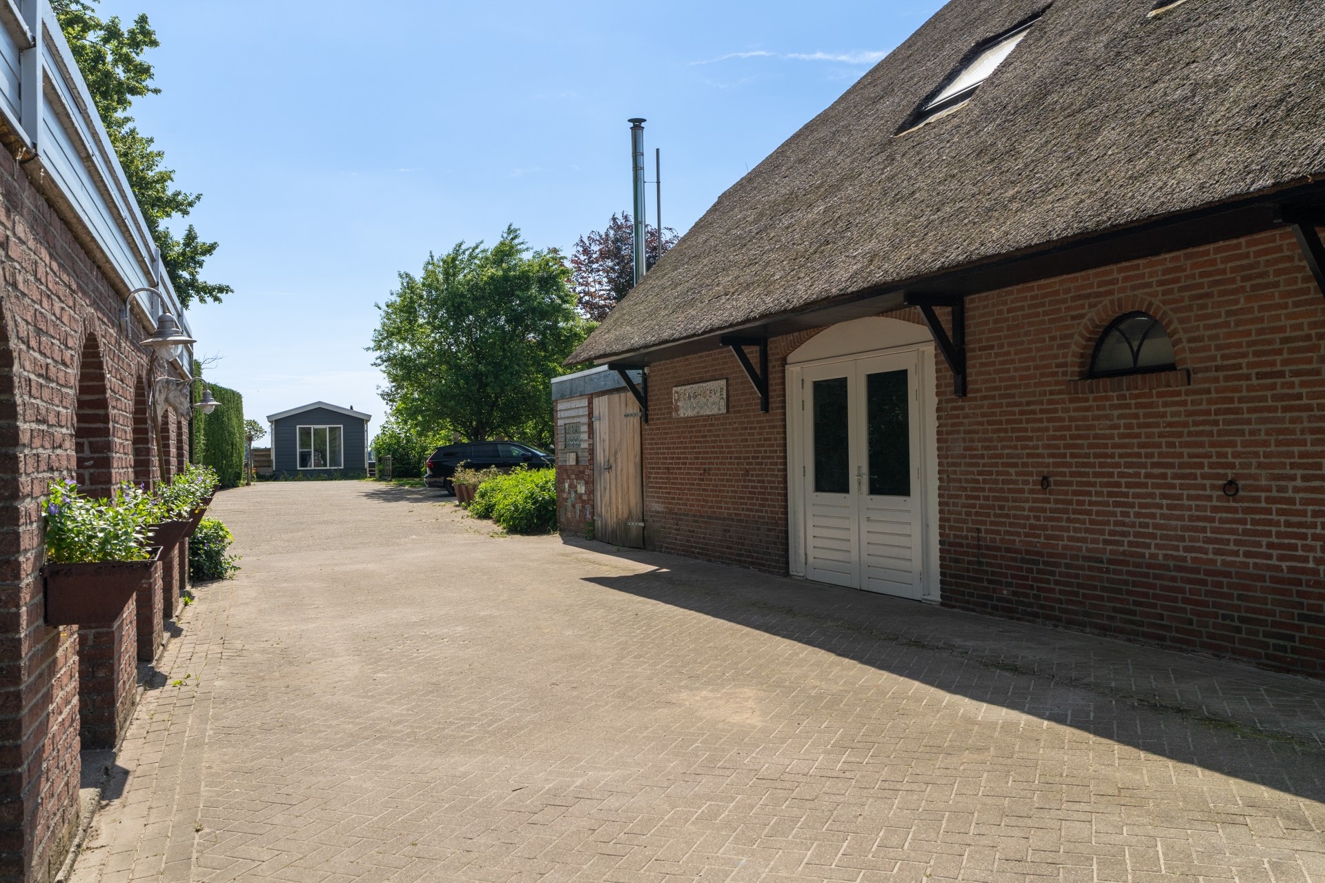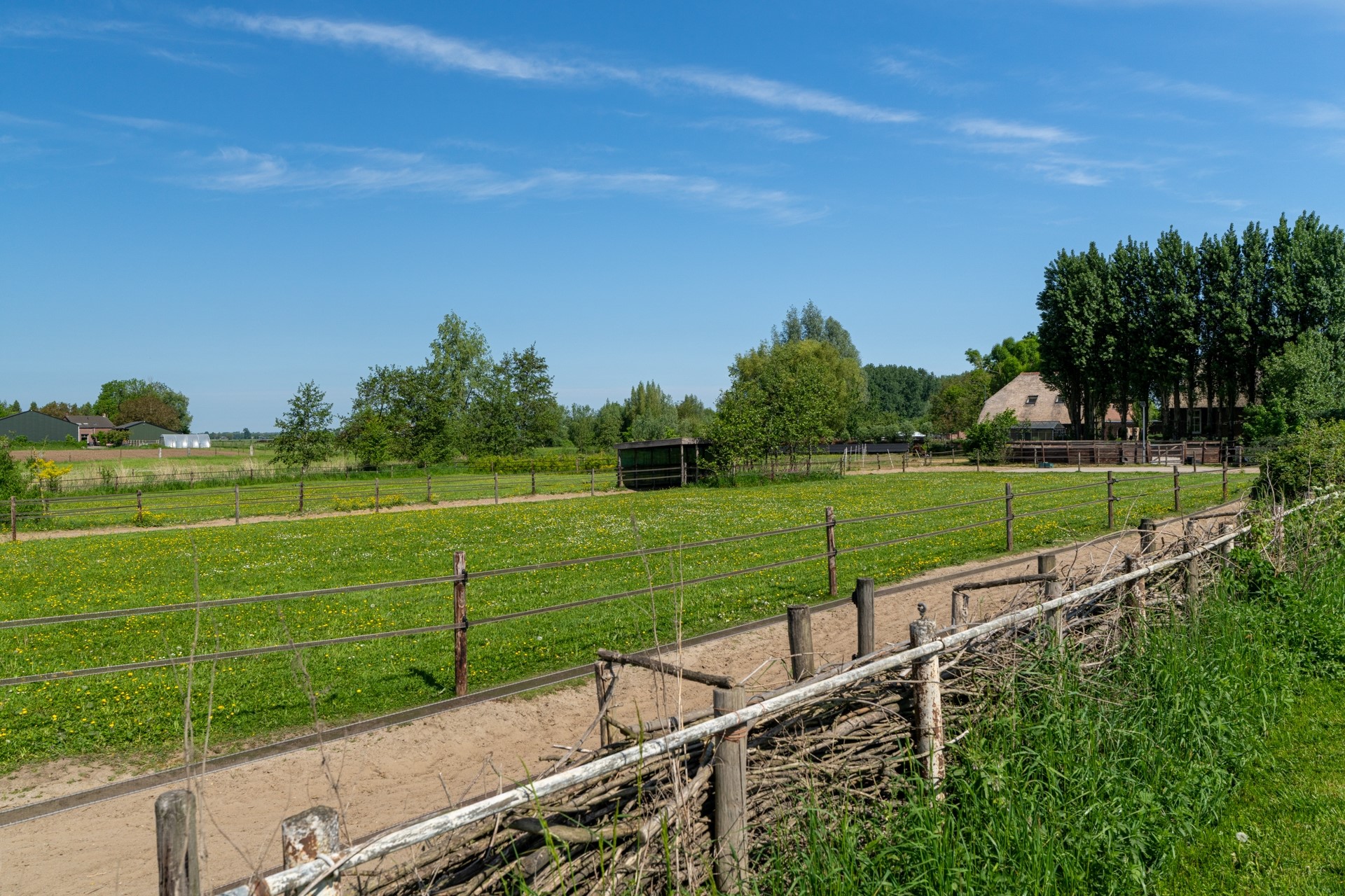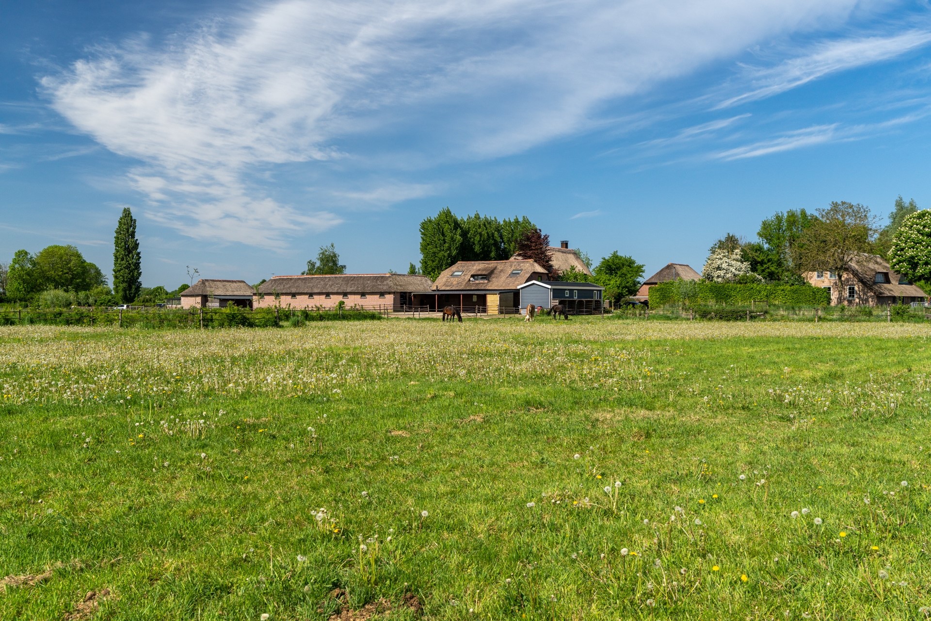 Direct aan de overzijde van de straat staan diverse gebouwen waaronder een hoofdgebouw, carré-vormig stallencomplex met geheel verharde binnenplaats, een overkapping voor de paarden met aansluitend een paddock, vrijstaande hooiopslag, quarantaine-weide met stal en diverse beweidingszones omgeven door natuur en wandelpad.