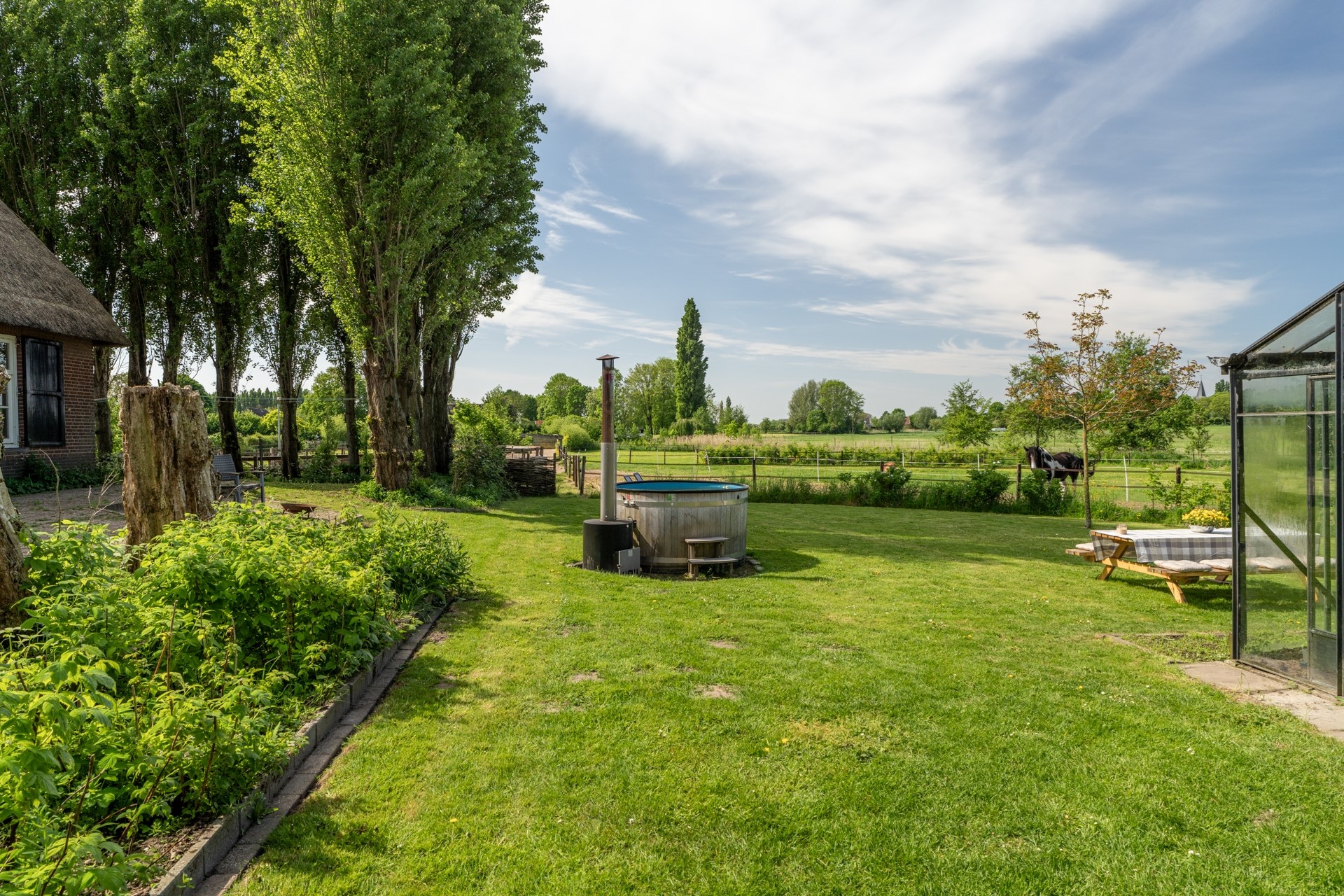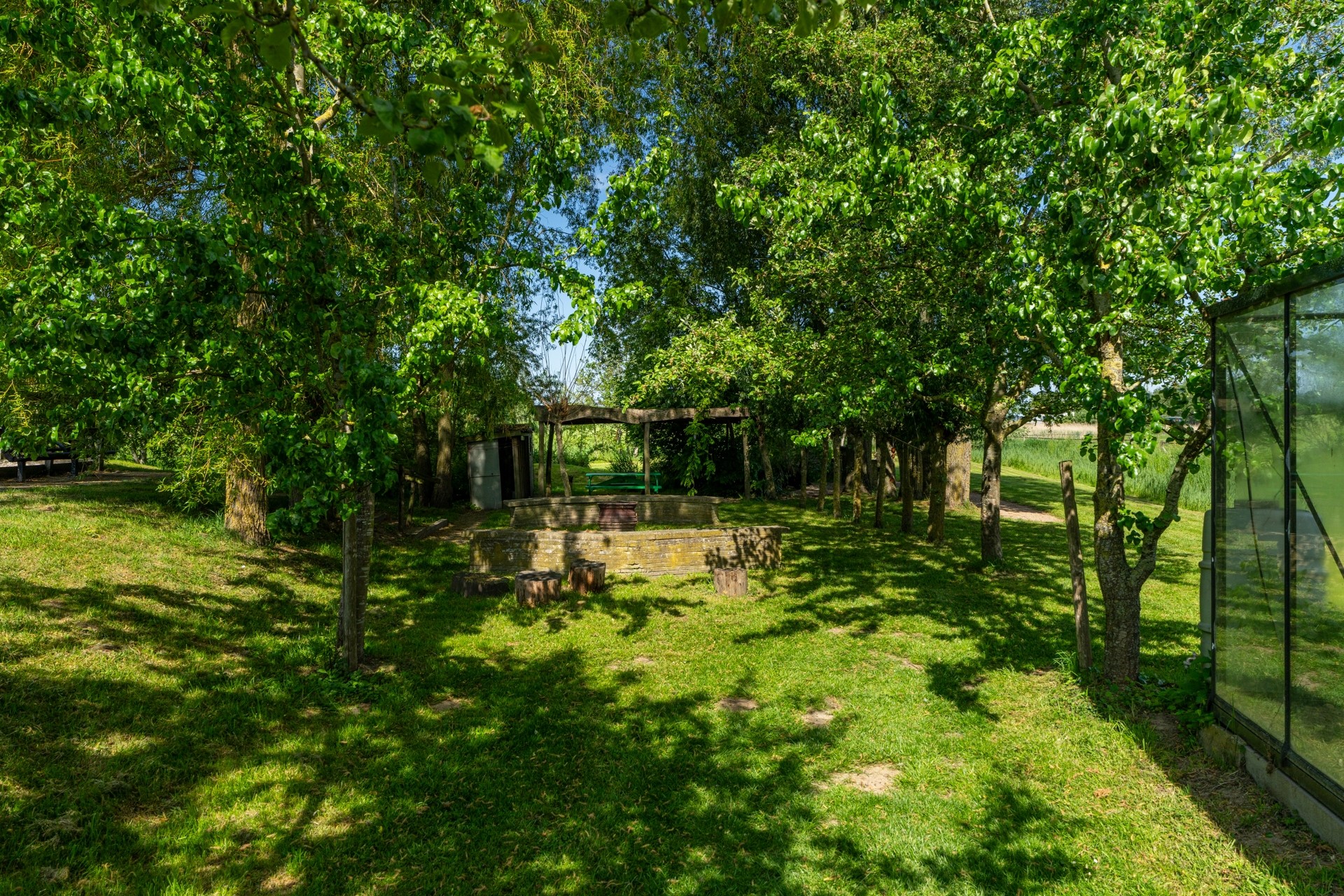 Rondom de bebouwing ligt een parkachtige tuin met een grote variatie aan fruitbomen, struiken en kruiden, uitloop voor de paarden, een longeercirkel en een paddock paradise met schuilmogelijkheden.