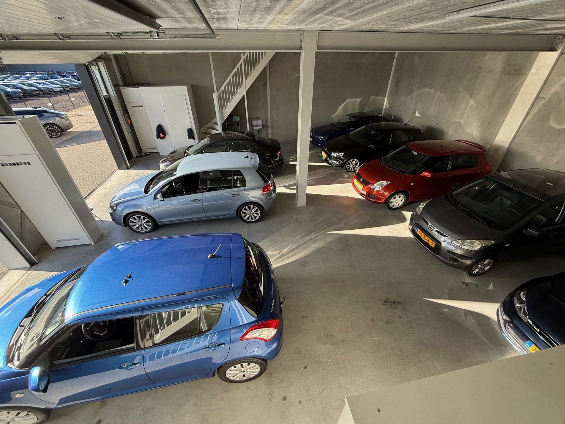 Deze ruime unit is dubbel zo groot doordat er 2 units zijn geschakeld zonder scheidingmuur. Aan de voorzijde zijn twee roldeuren en 2 loopdeuren aan-wezig. Indien gewenst kan er natuurlijk een tussenmuur geplaatst worden. Over het hele oppervlak ligt een betonnen verdiepingsvloer. Het is mogelijk om een aparte entree voor de verdieping te gebruiken. De afmetingen van de bedrijfsruimte zijn 12,9 meter breed en 12,3 meter diep, wat resulteert in 159 m² bedrijfsruimte op de begane grond en 159 m² kantoorruimte, kantine, showroom of opslag op de verdieping. Voor het pand liggen vier eigen par-keerplaatsen.
