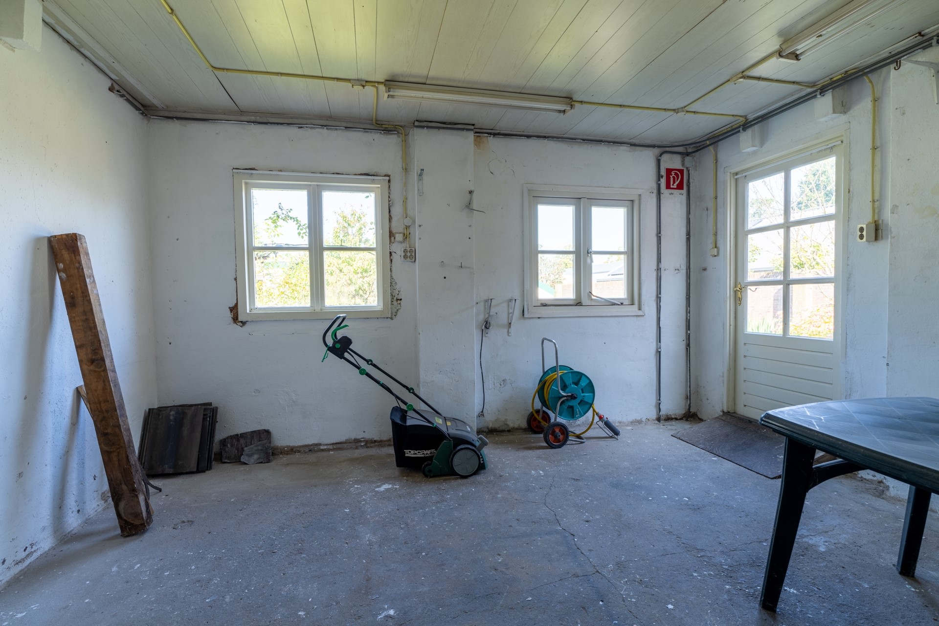 De combinatie van wonen en werken maakt dit object uniek: naast het wooncomfort biedt de grote hal volop mogelijkheden voor opslag, werkplaats of hobbyruimte.