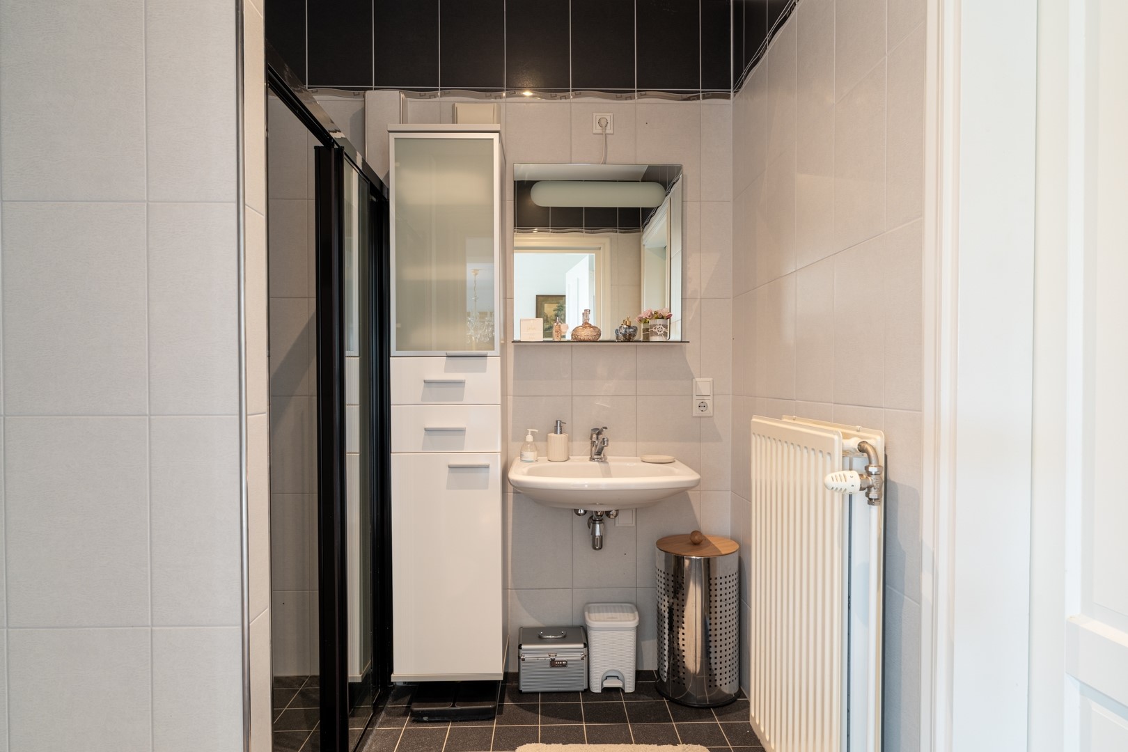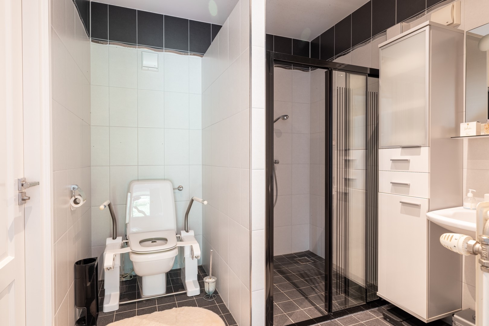 - Badkamer 1: volledig ingericht voor mindervaliden, met ruime inloopdouche, wastafelmeubel en sta-op-toilet.