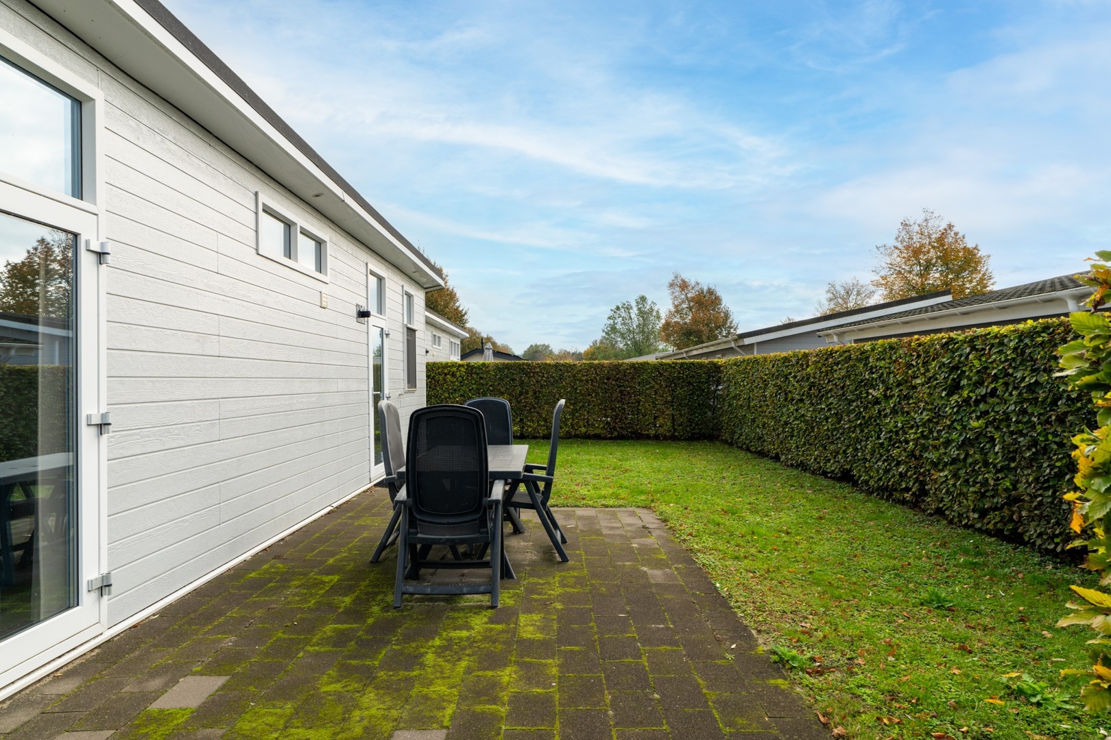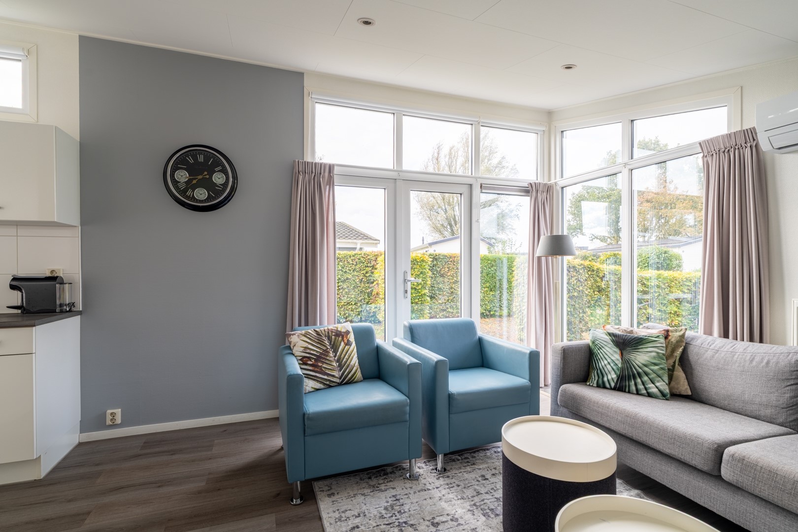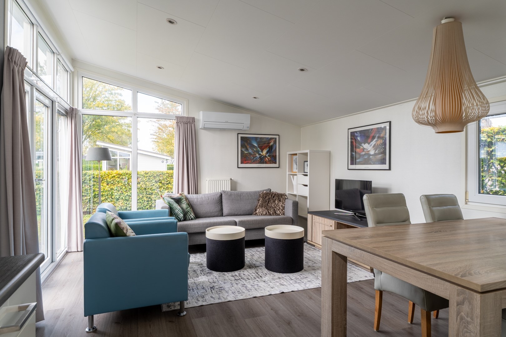 VAKANTIE! Dit moderne chalet uit 2013 is voorzien van alle gemakken en gelegen op Recreatiepark het Esmeer. Het park staat bekend als misschien wel het netste park uit de regio. 365 dagen per jaar ligt alles er hier spik en span bij waardoor het hier niet alleen in de zomer maar het hele jaar door optimaal genieten is! Het chalet is door het vele glaswerk heerlijk licht van binnen en de openslaande deuren kunnen in de zomer lekker open gegooid worden om de woonkamer en keuken bij het terras te betrekken. Zodoende een ideale plek om te barbecueën of een drankje te pakken op een relaxte zomeravond. Vlakbij het park zijn diverse voorzieningen gelegen als een haven, speeltuin en een strand. Dit alles is gelegen bij het karakteristieke dorp Aalst waar een supermarkt, bakker en diverse eetgelegenheden te vinden zijn. Kortom een toplocatie wat betreft recreëren!