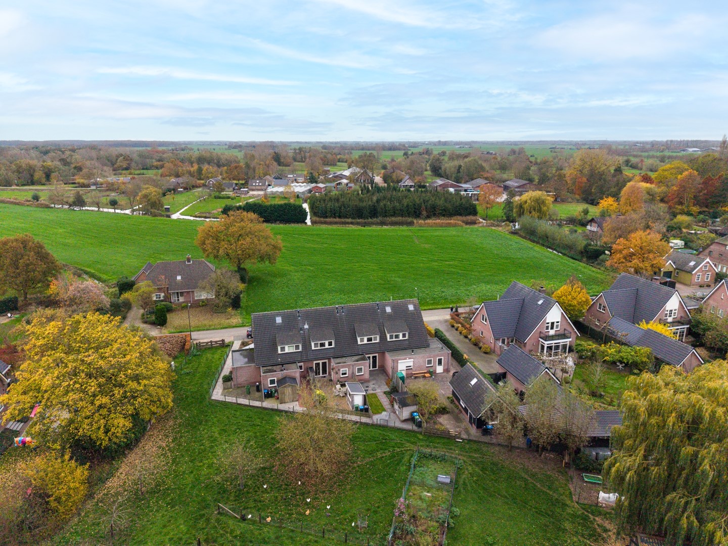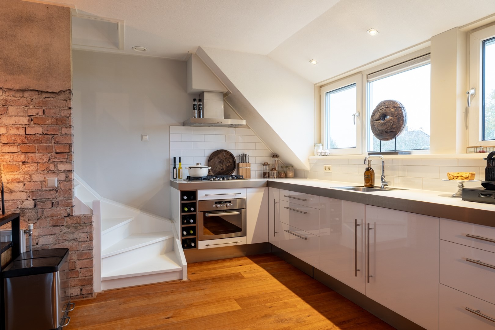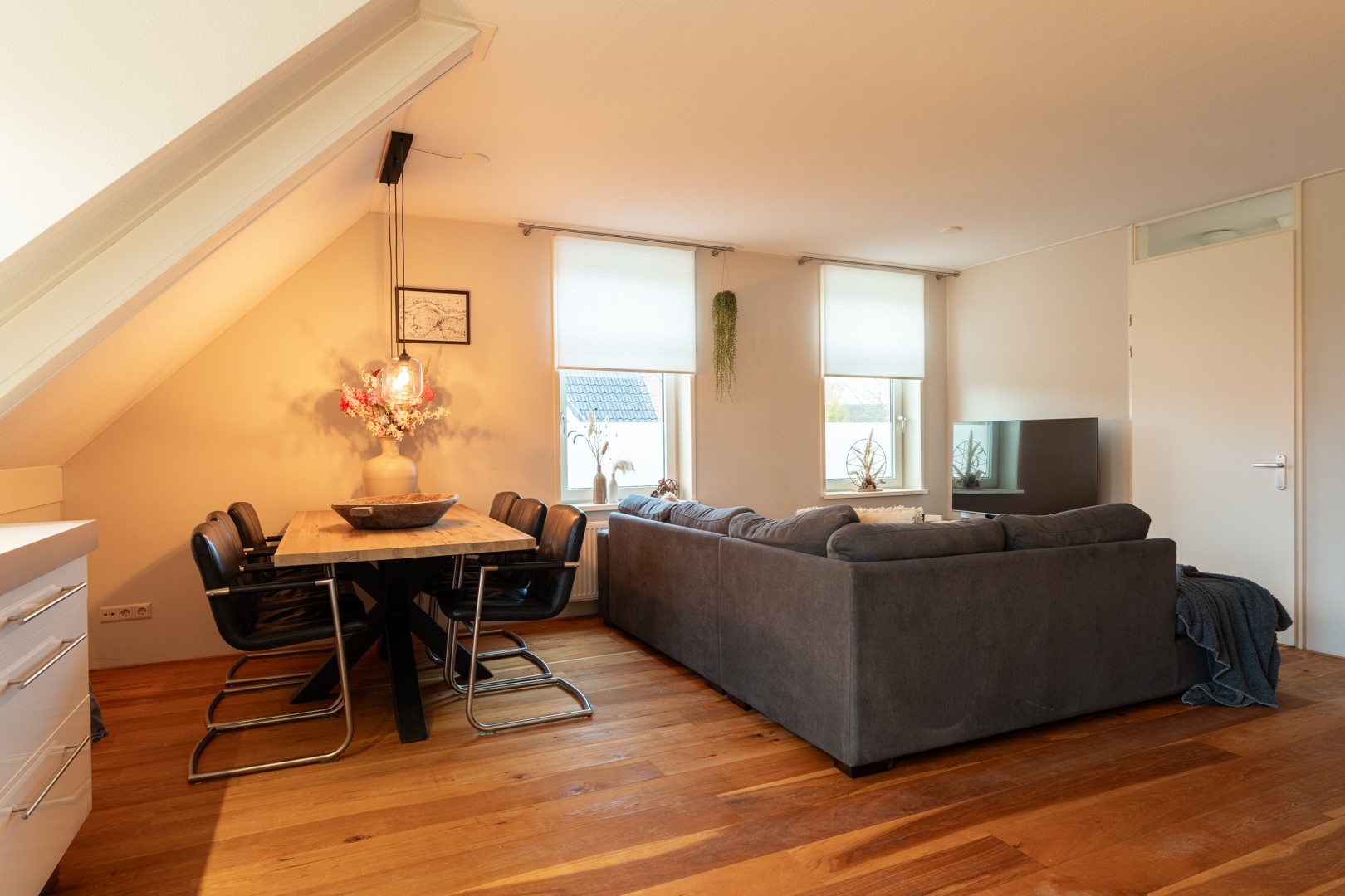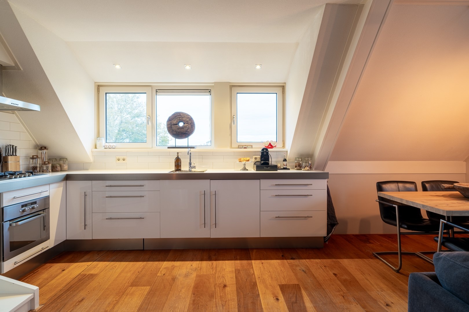 Doordat de woonkamer en keuken op de eerste verdieping liggen, geniet je hier van een prachtig weids uitzicht over de landerijen. De dakkapel en zijramen zorgen voor heerlijk veel daglicht, waardoor de ruimte nóg groter aanvoelt. De moderne hoekkeuken is compleet uitgerust met een gaskookplaat, combimagnetron, afzuigkap en koelkast — klaar om meteen lekker te kunnen koken of appeltaart te bakken.