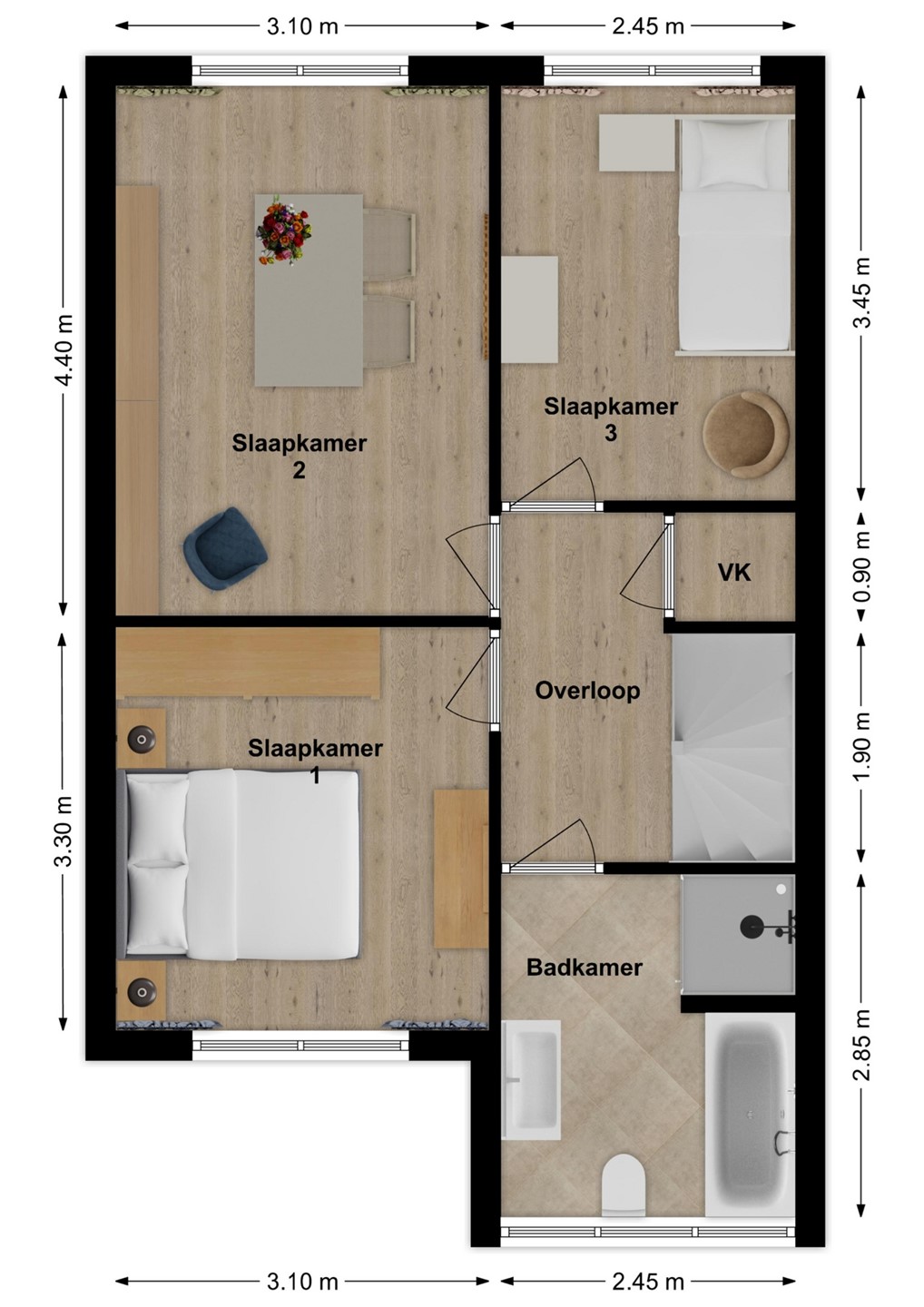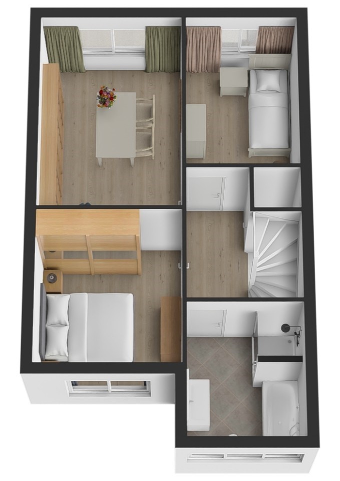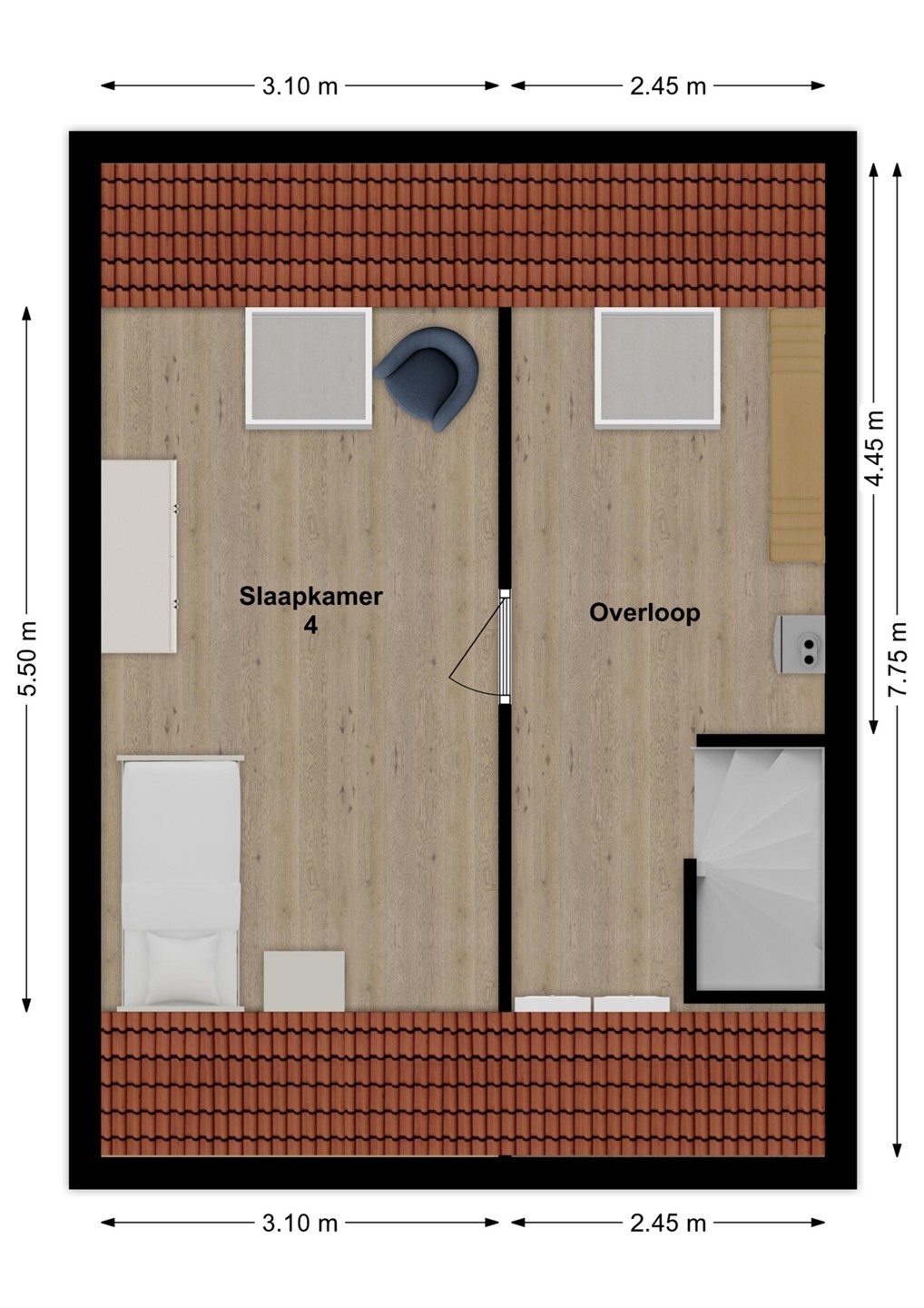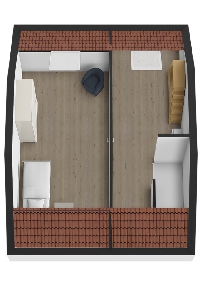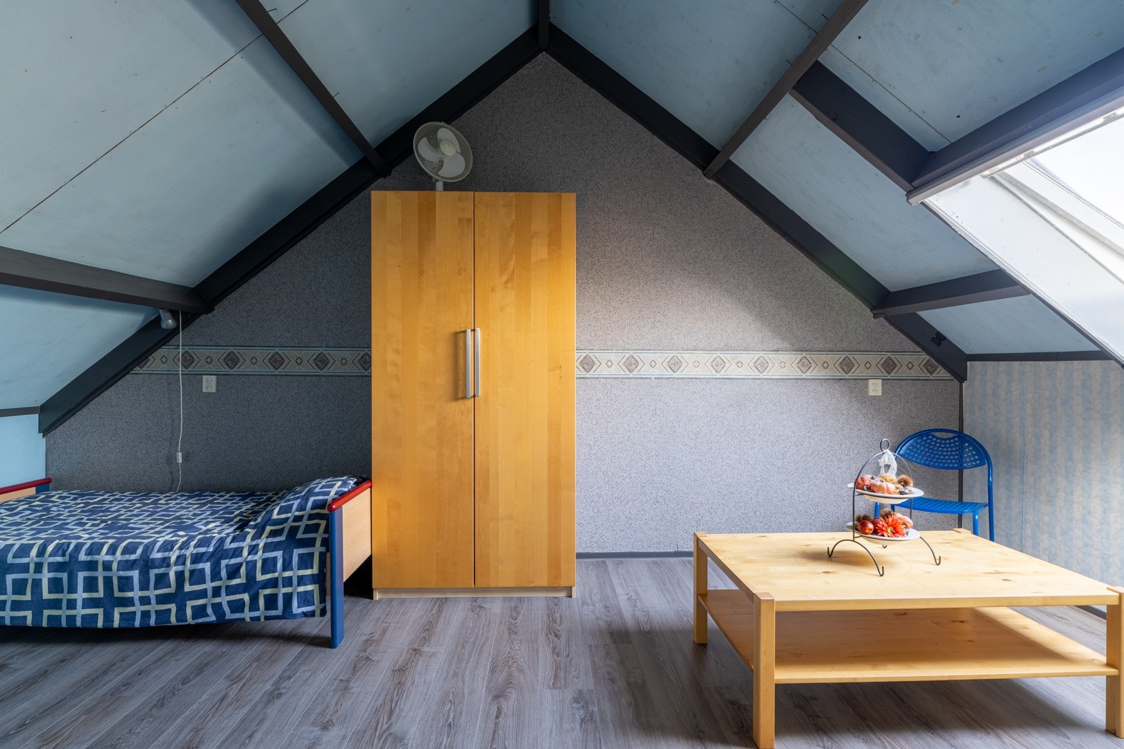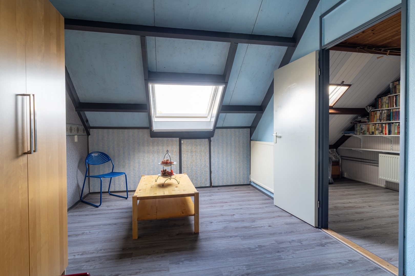 Op de eerste verdieping vind je drie verrassend ruime slaapkamers. Eén ervan heeft zelfs een vaste kast voor kleren of andere spullen. De badkamer is niet spiksplinternieuw, maar keurig onderhouden en uitgerust met alles wat je nodig hebt: een douche, ligbad, zwevend closet, wastafelmeubel, designradiator én vloerverwarming (want niemand wil koude voeten na een warm bad). De zolder verrast met een vierde slaapkamer, voorzien van dakraam en bergruimte achter het knieschot. Op de overloop tref je de cv-ketel, mechanische ventilatie en een aansluiting voor de wasmachine – praktisch en functioneel.