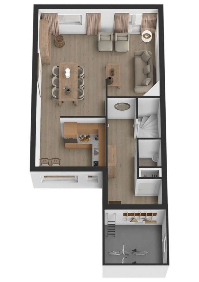 De open keuken is niet de nieuwste van het dorp, maar laat je niet foppen: hij is volledig uitgerust. Je kookt op een moderne inductieplaat, hebt de luxe van een combi-oven, koelkast, vaatwasser én natuurlijk een afzuigkap om de geur van die mislukte curry subtiel weg te blazen. Een deel van de apparatuur is al vernieuwd, dus je bent alvast een stapje op weg naar een eigentijdse keuken.