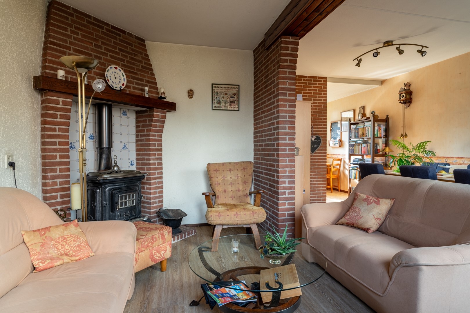 Binnenkomend via de hal (inclusief trapkast – ideaal voor stofzuiger en voorraad), kom je in de gezellige woonkamer. Dankzij de houtkachel wordt het hier in de winter extra knus en de tuindeur brengt de zomer lekker naar binnen. De ruimte is leuk ingedeeld, licht en klaar voor een nieuwe eigenaar die er zijn eigen draai aan wil geven.