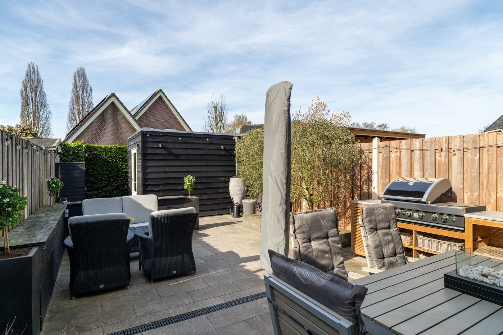De tuin ligt perfect op de zon en is lekker diep – ideaal voor lange zomeravonden. Achterin staat een splinternieuwe houten berging. Via de achterom ben je zo weg. Voor de deur? Genoeg parkeerruimte, dus nooit gedoe.