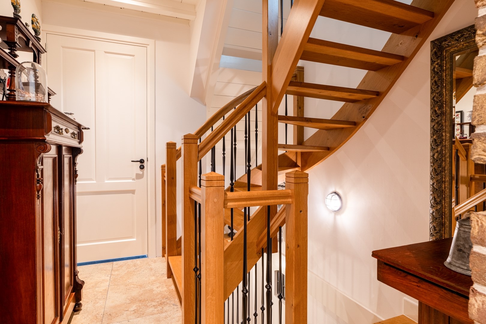 Wat direct opvalt, is de praktische indeling en royale ruimtes. In het souterrain vind je twee slaapkamers, een luxe badkamer en een multifunctionele ruimte die momenteel dienstdoet als berging en praktijkruimte. Vroeger was dit een garage, dus mocht je dat willen, is dat eenvoudig te herstellen. Op dijkniveau ligt de riante woonkamer met erker, de complete woonkeuken en een handige bijkeuken. Helemaal boven bevindt zich een royale slaapkamer met toegang tot een loggia.