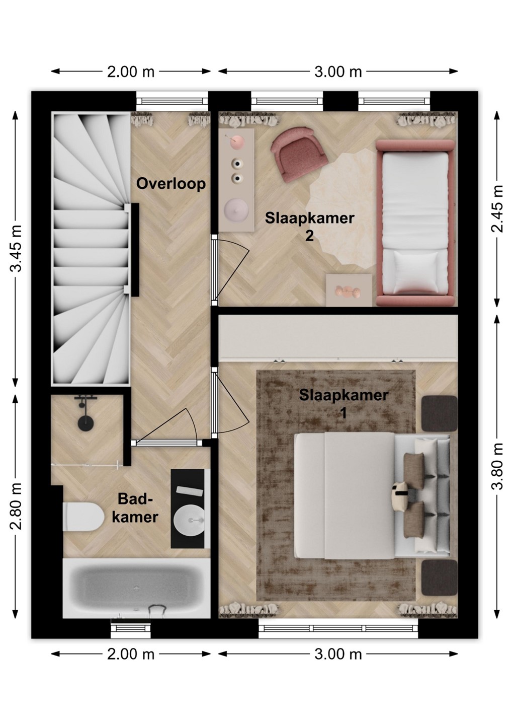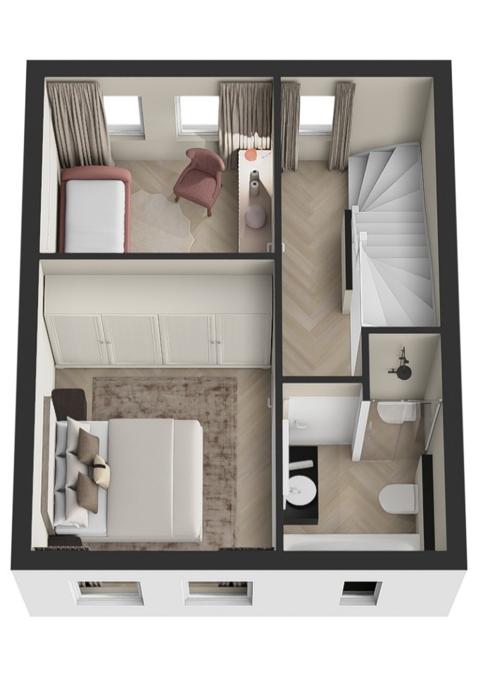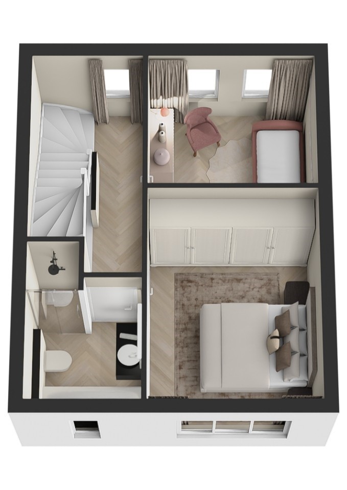 De lichte woonkamer staat in open verbinding met de keuken en via de openslaande tuindeuren loop je zo de diepe achtertuin in. Op de verdiepingen zijn meerdere slaapkamers en een badkamer aanwezig, voorbereid voor douche, ligbad, wastafel en toilet, zodat je deze zelf kunt ontwerpen. De zolder biedt een extra slaapkamer en praktische wasruimte met warmtepomp en ventilatie. In de tuin staat een berging van circa 6 m² met elektra, ideaal voor fietsen of tuingereedschap. Zo biedt deze woning volop mogelijkheden om van een nieuwe woning jouw persoonlijke thuis te maken.