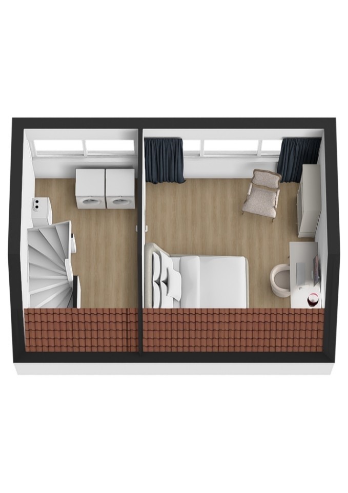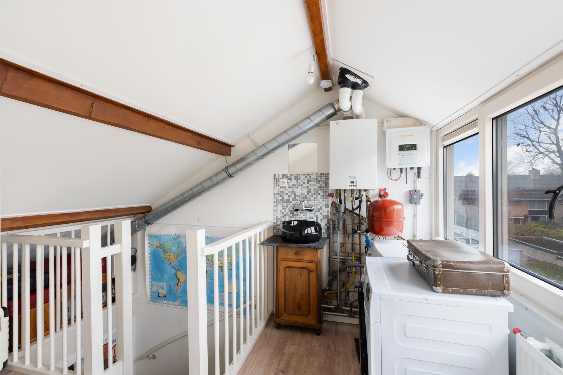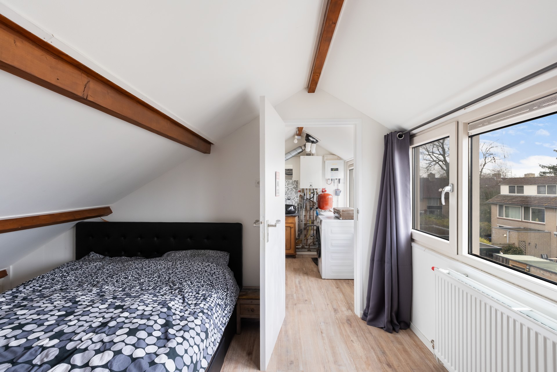 Op de eerste verdieping vind je een overloop met drie ruime slaapkamers en een keurige badkamer voorzien van een douche en wastafel. Een toilet in de badkamer realiseren? Dat kan relatief eenvoudig. Op zolder bevindt zich nog een ruime vierde (slaap)kamer, netjes afgewerkt en flexibel in te delen. Verder vind je hier de cv-installatie, de aansluitingen voor wasmachine en droger én extra bergruimte. Perfect voor spullen die je niet dagelijks nodig hebt.