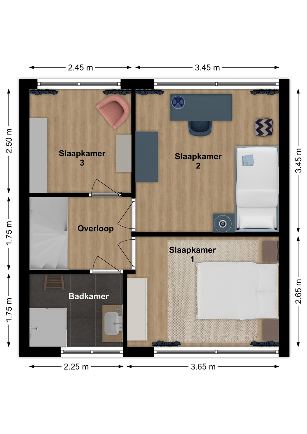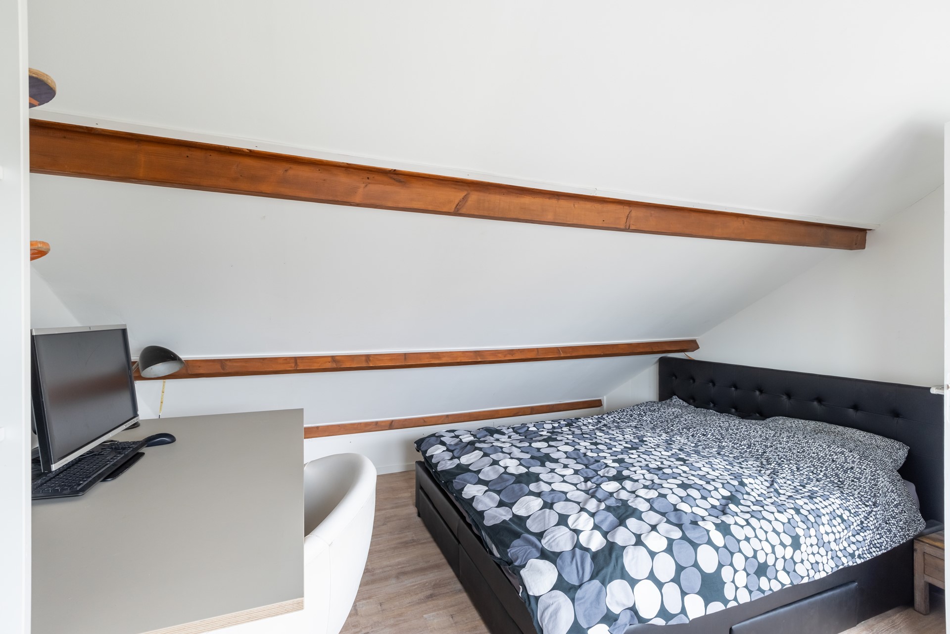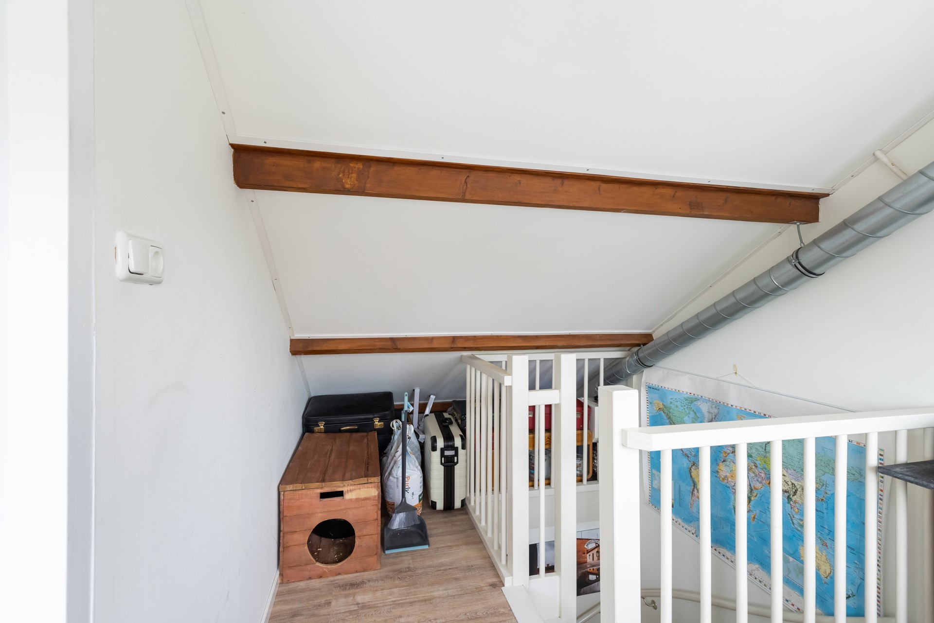 Op de eerste verdieping vind je een overloop met drie ruime slaapkamers en een keurige badkamer voorzien van een douche en wastafel. Een toilet in de badkamer realiseren? Dat kan relatief eenvoudig. Op zolder bevindt zich nog een ruime vierde (slaap)kamer, netjes afgewerkt en flexibel in te delen. Verder vind je hier de cv-installatie, de aansluitingen voor wasmachine en droger én extra bergruimte. Perfect voor spullen die je niet dagelijks nodig hebt.