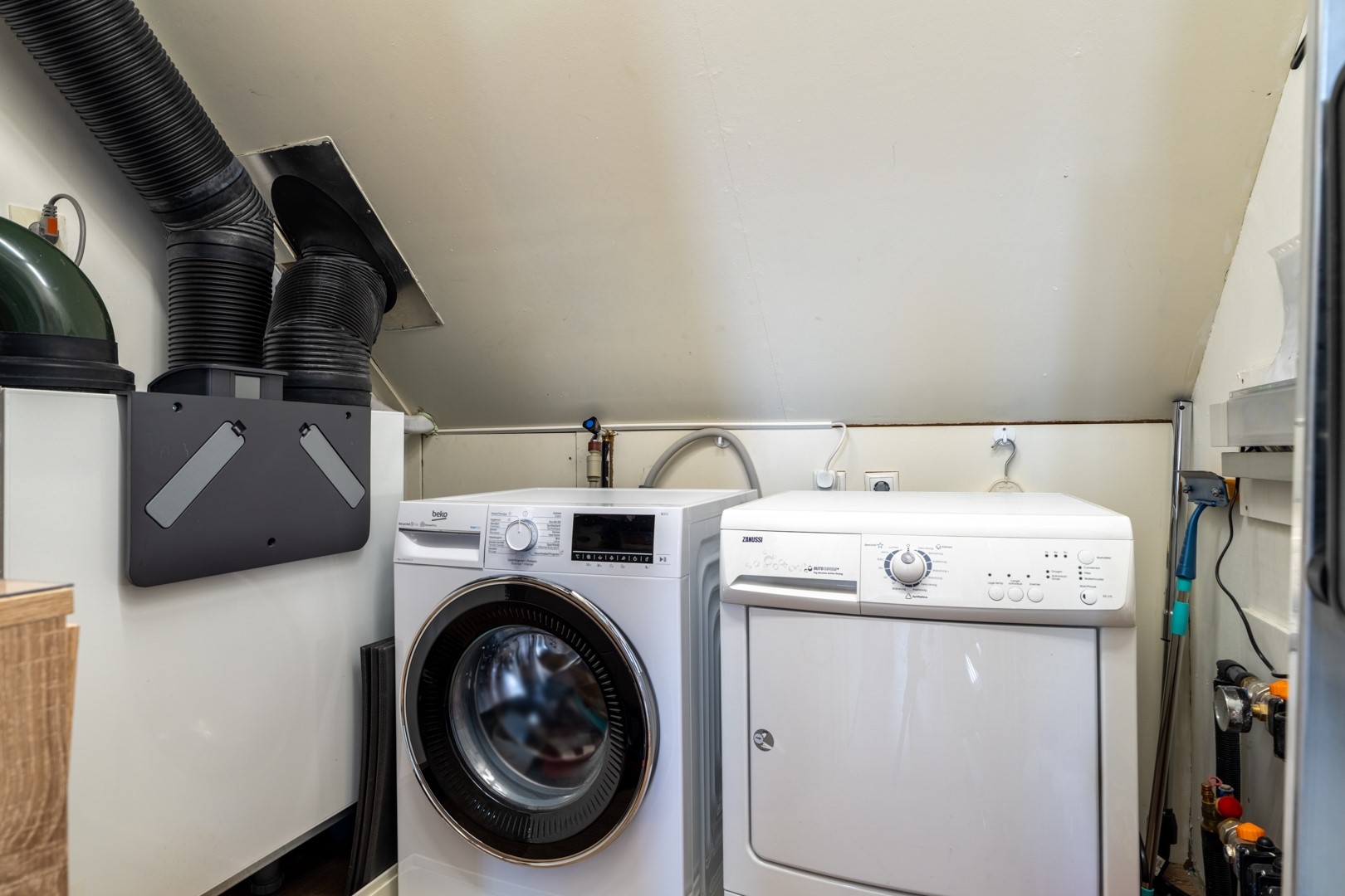Overloop met wasruimte voorzien van het warmte-terugwinsysteem en wasmachine-aansluiting. Twee ruime slaapkamers met vloerverwarming.