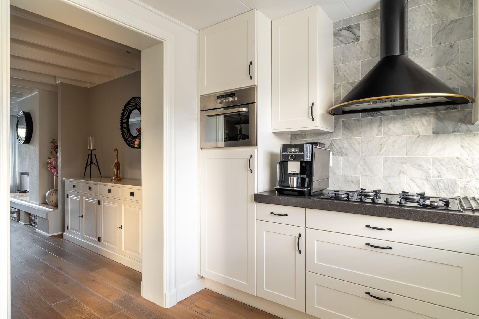 • Ruime L-vormige woonkamer met uitgebouwde luxe keuken (2023);