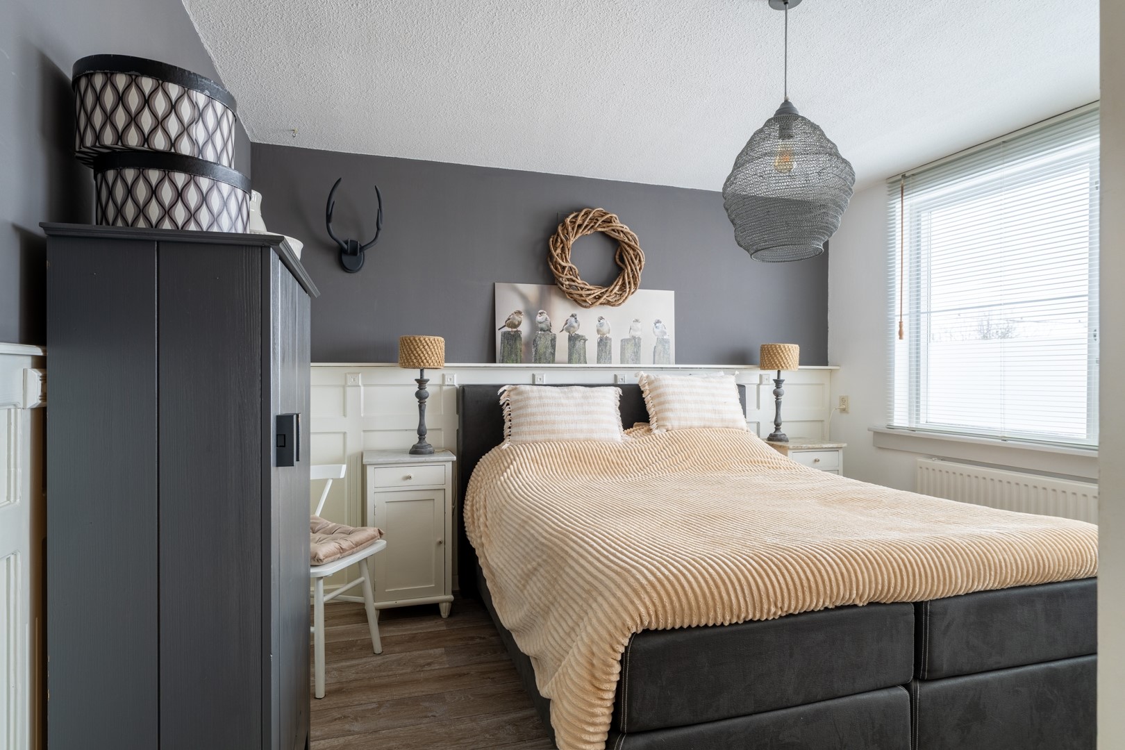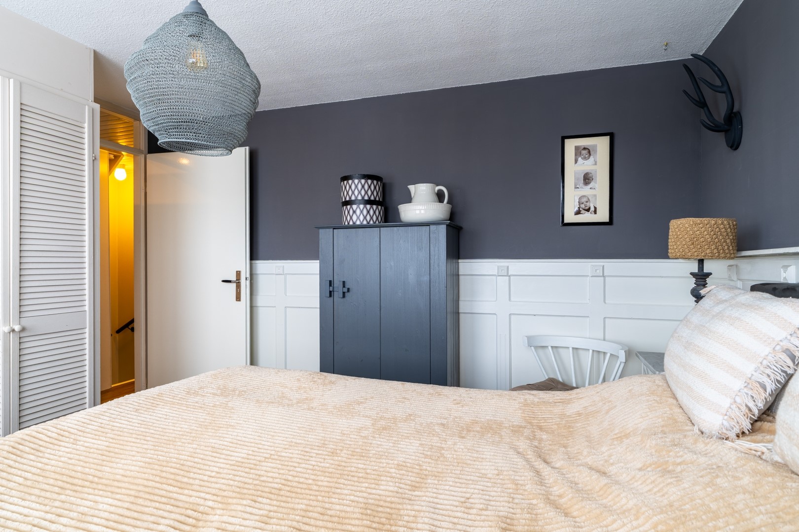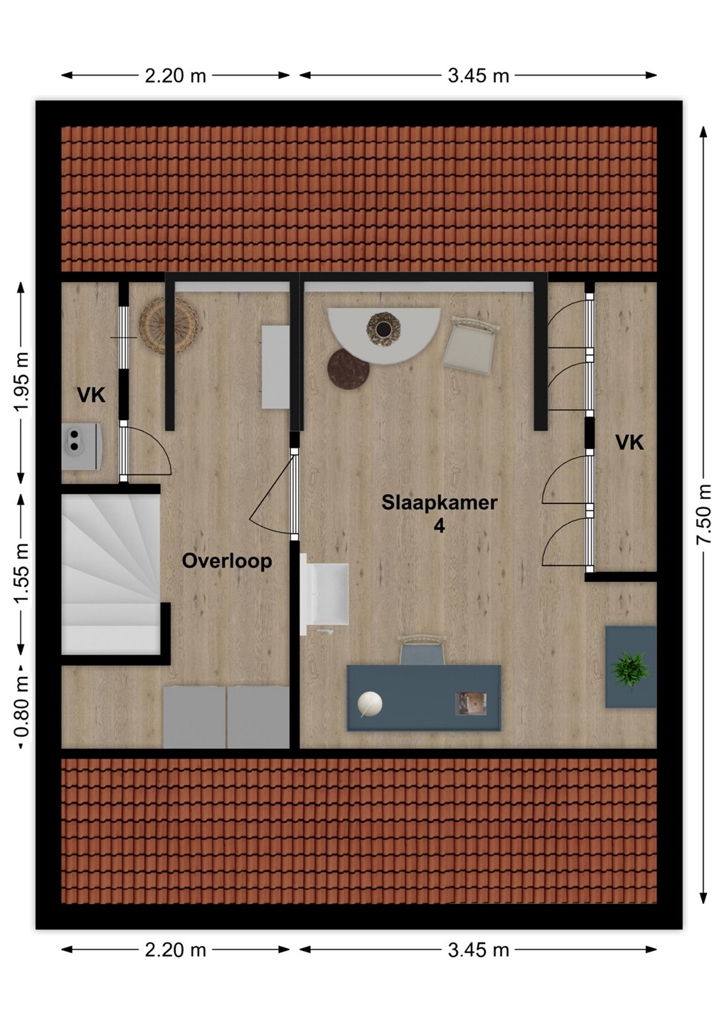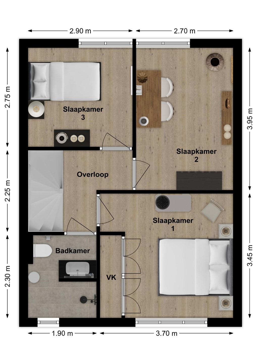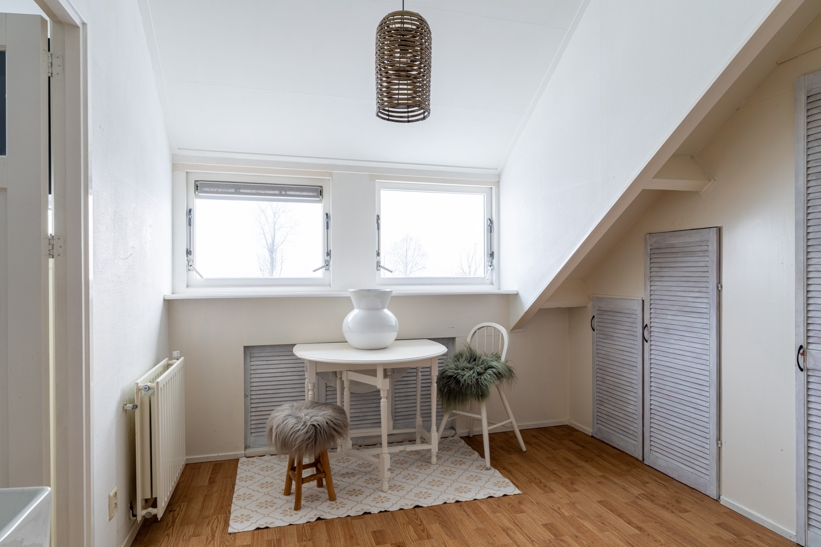 Op de eerste verdieping zijn drie slaapkamers en een sfeervolle badkamer aanwezig. Eén van de slaapkamers beschikt over een vaste kastenwand. De badkamer is ingericht met een inloopdouche met hand- en stortdouche, een zwevend toilet, designradiator en een authentiek wastafelmeubel. Daarnaast is er elektrische vloerverwarming. Via een vaste trap bereik je de zolderverdieping, die bestaat uit een voorzolder met wasruimte en cv-opstelling, plus een vierde slaapkamer met dakkapel.