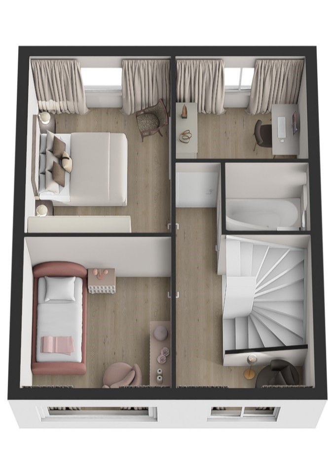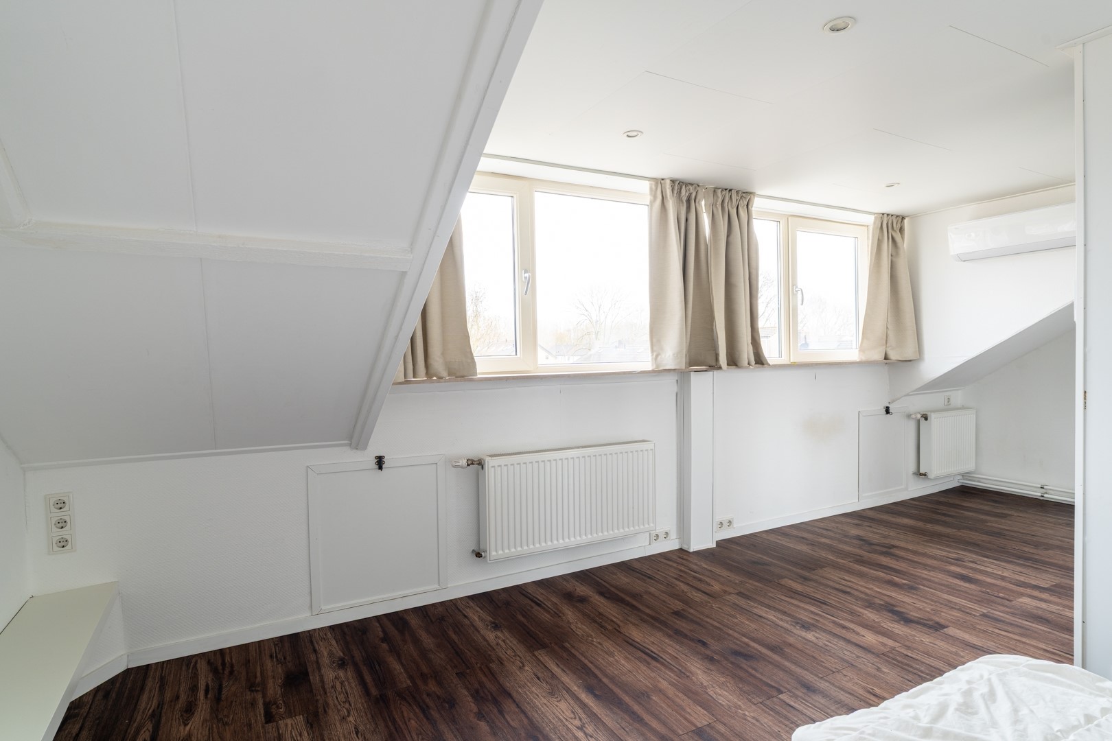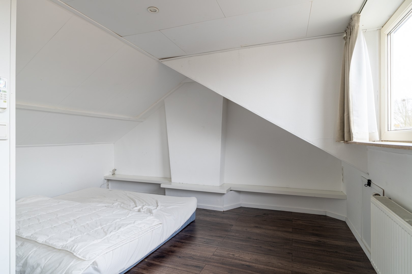 Op de eerste verdieping vind je een ruime overloop met plek voor een werkhoek, thuiswerken zonder dat je aan de keukentafel hoeft te zitten? Check. Verder zijn er drie ruime slaapkamers, stuk voor stuk geschikt voor slapen, werken of hobby’s. De badkamer is compact en compleet, met een ligbad/douchecombinatie en een wastafelmeubel. Gewoon netjes en functioneel. De zolderverdieping biedt nog meer verrassingen: een overloop met dakraam, cv-ketel en bergruimte met WTW-installatie. En alsof dat nog niet genoeg is, vind je hier een vierde slaapkamer met dakkapel, airco en extra bergruimte achter het knieschot. Perfect als master bedroom, tienerkamer of ultieme hobbyruimte.