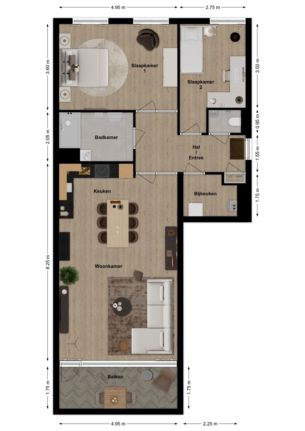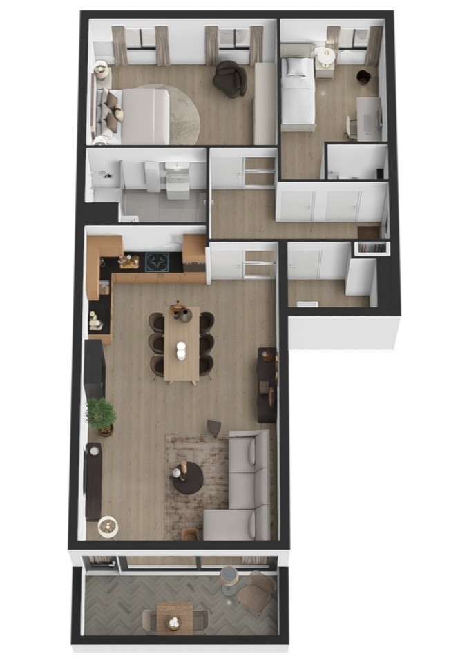 Het balkon (ca. 2.10 x 4.95 meter) is een fijne plek om te ontspannen, borrelen of gewoon te genieten van het uitzicht. De vloer is afgewerkt met onderhoudsvriendelijke vlondertegels in houtlook. In de woonkamer is een screen aanwezig, zodat je op warme dagen de zon lekker buiten houdt. In de vaste kast op het balkon berg je gemakkelijk kussens of accessoires op.