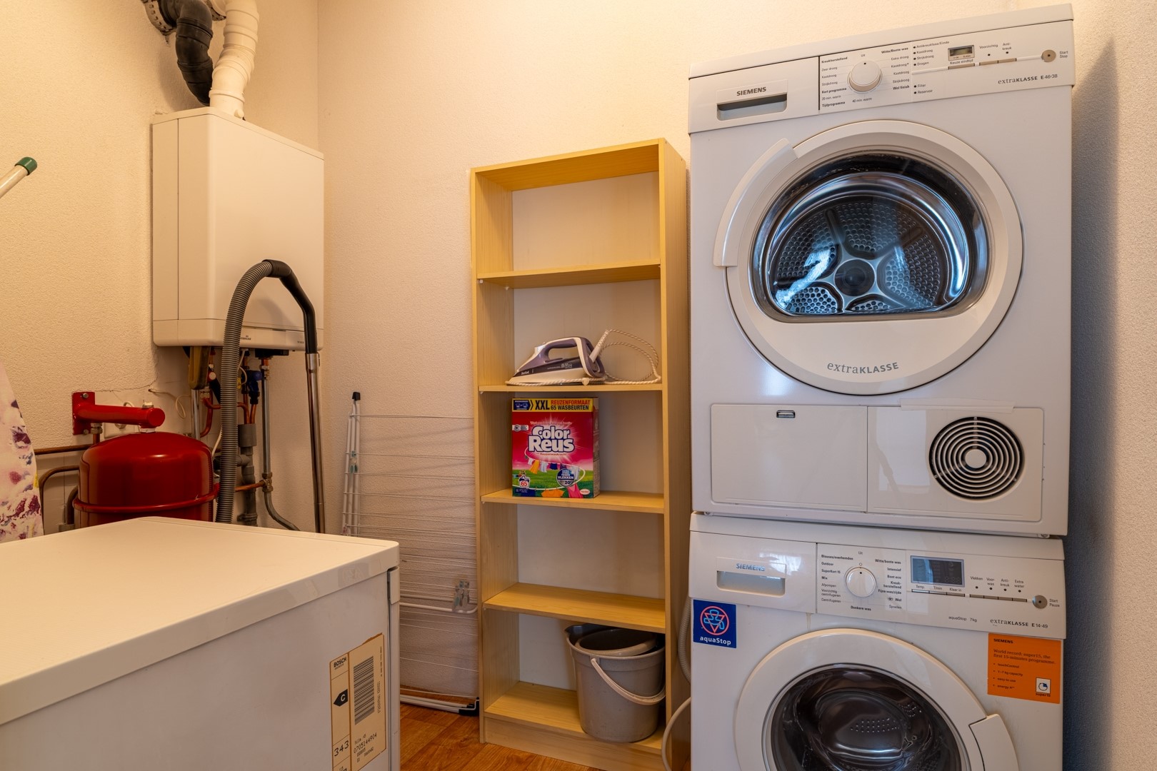 Het appartement heeft twee slaapkamers. De grootste is ruim genoeg voor een tweepersoonsbed en kasten. De tweede kamer is perfect als logeerkamer, kantoor of hobbyruimte. De badkamer is netjes afgewerkt met douche en wastafelmeubel. Ook is er een apart toilet in de hal en een berging met cv-installatie, wasmachine en droger aansluiting en extra opslagruimte.