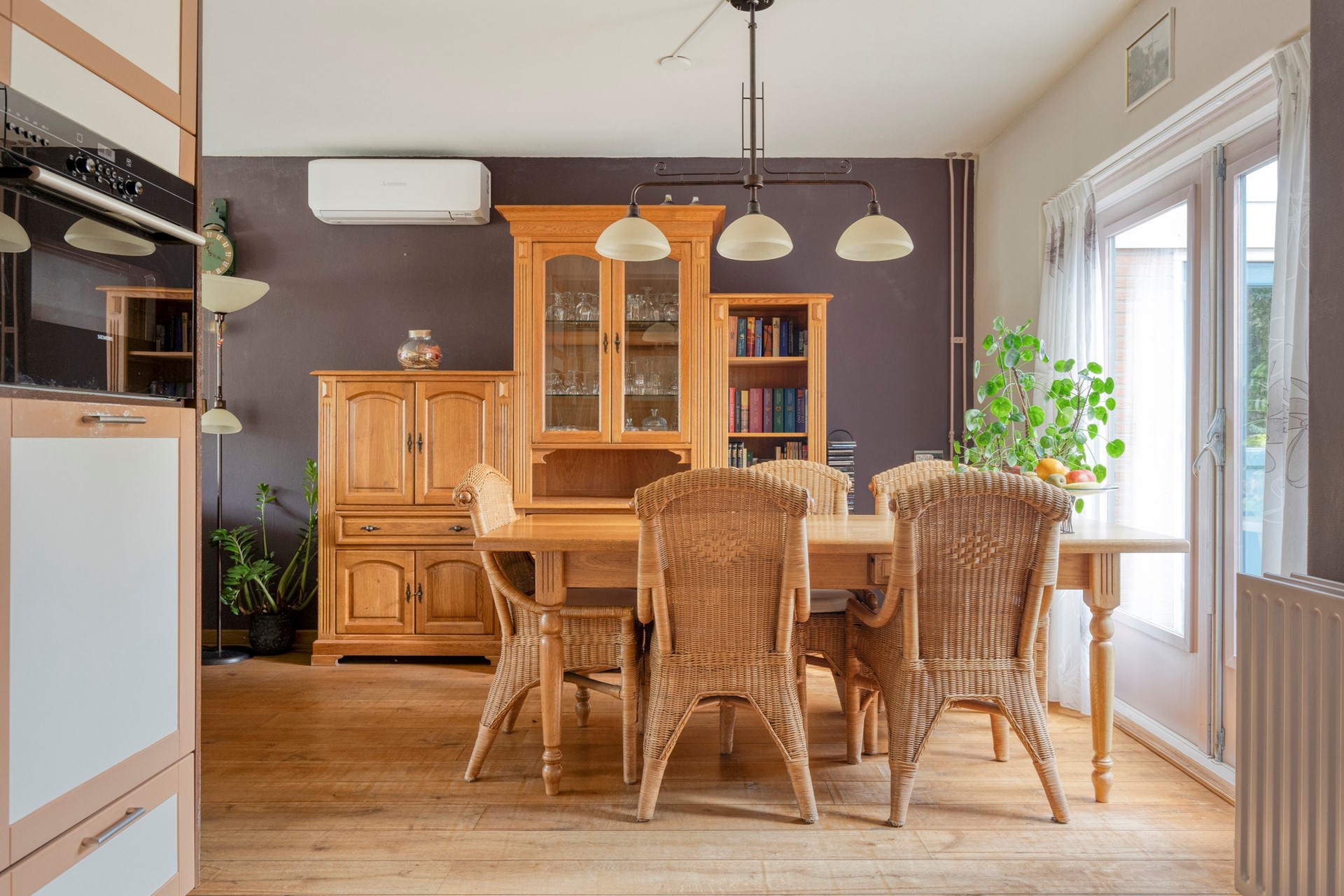 Binnenkomen doe je in de hal waar je niet struikelt over jassen of tassen – lekker ruim opgezet dus. De toiletruimte is voorzien van een zwevend closet en fonteintje. De woonkamer is licht en ruim, met een airco voor de zomerse dagen en dubbele openslaande tuindeuren die uitnodigen om je leefruimte moeiteloos naar buiten uit te breiden. Het is hier is degelijk, verzorgd en comfortabel.