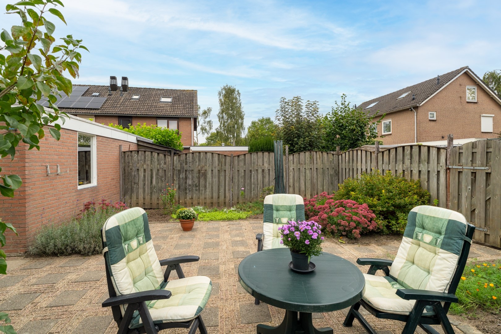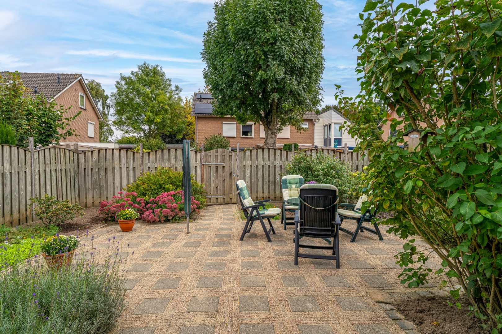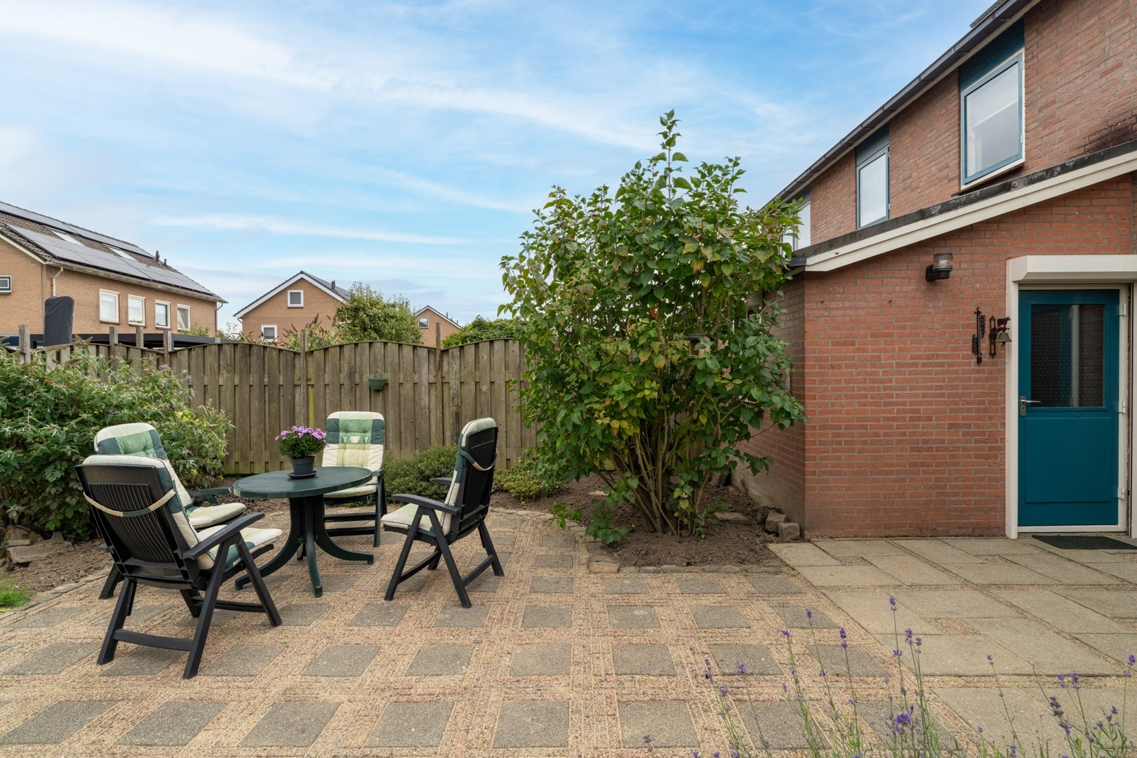 De achtertuin ligt op het oosten, wat betekent dat je 's ochtends al kunt genieten van een croissantje in de zon. Er is een achterom voor de fiets of kliko. En dan hebben we nog een flinke garage (8,05 x 3,5 meter) met elektra, water en verwarming – de droom van iedere klusser, verzamelaar of gewoon iemand die écht niet meer weet waar hij zijn spullen moet laten.