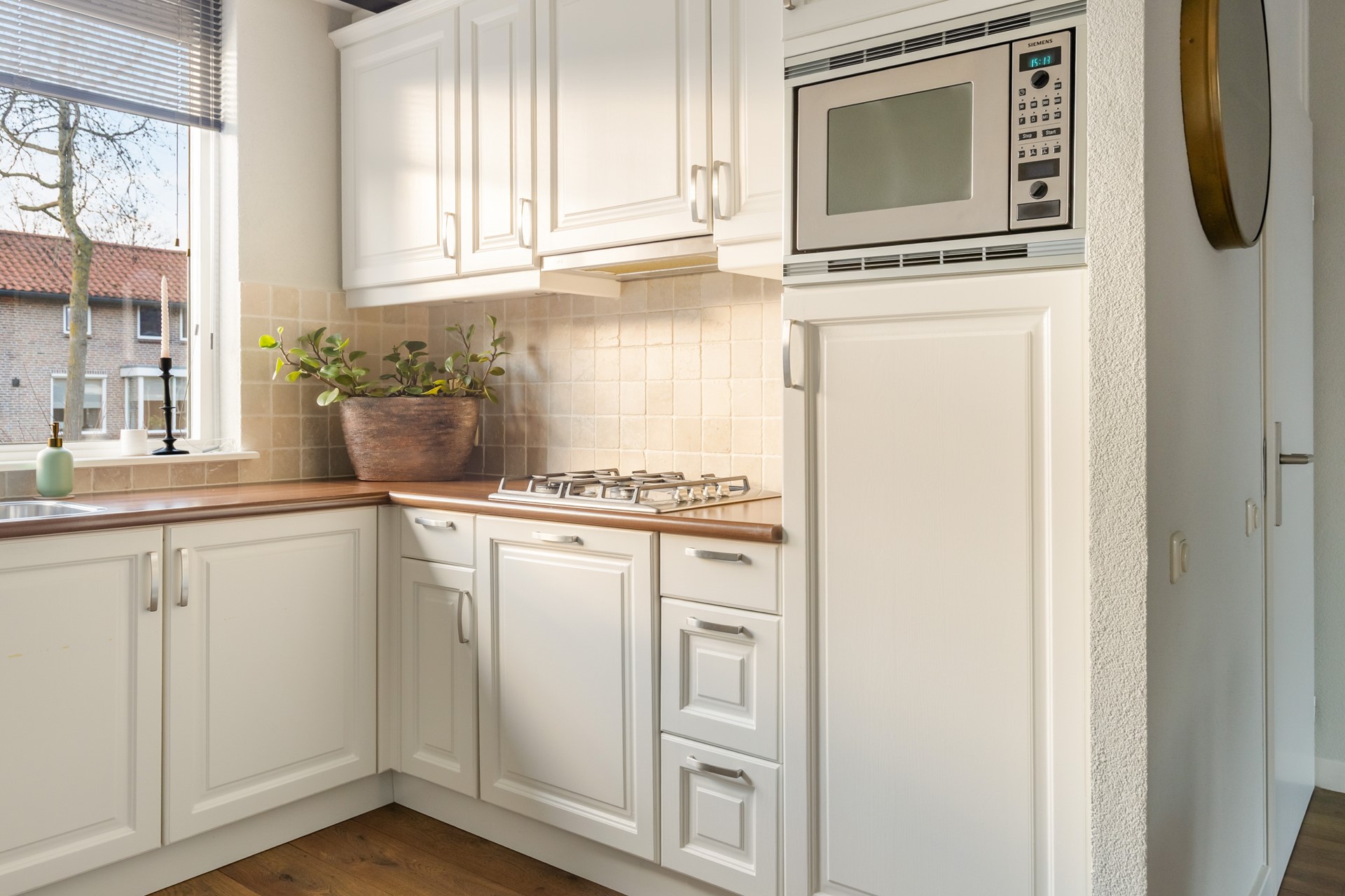 Via de voordeur kom je binnen in de hal/entree met meterkast, toilet en trapopgang naar boven. Vanuit hier loop je direct de woonkamer in: een fijne, ruime leefruimte die extra groot aanvoelt door de uitbouw aan de achterzijde. Op mooie dagen zet je de openslaande tuindeuren open en betrek je de tuin moeiteloos bij het wonen. Onder de trap vind je een handige trapkast (stofzuiger-proof) en daarnaast is er een praktische bijkeuken/achterportaal. Hier bevinden zich de aansluitingen voor wasmachine en droger én een (loop)deur naar zowel de achtertuin als de garage. Handig! Aan de voorzijde van de woning ligt de keuken. Deze is uitgevoerd in een keurige hoekopstelling met volop kastruimte en diverse inbouwapparatuur, waaronder een vaatwasser. Aansluitend is er meer dan genoeg plek voor een royale eethoek waar je gezellig lang kunt tafelen.