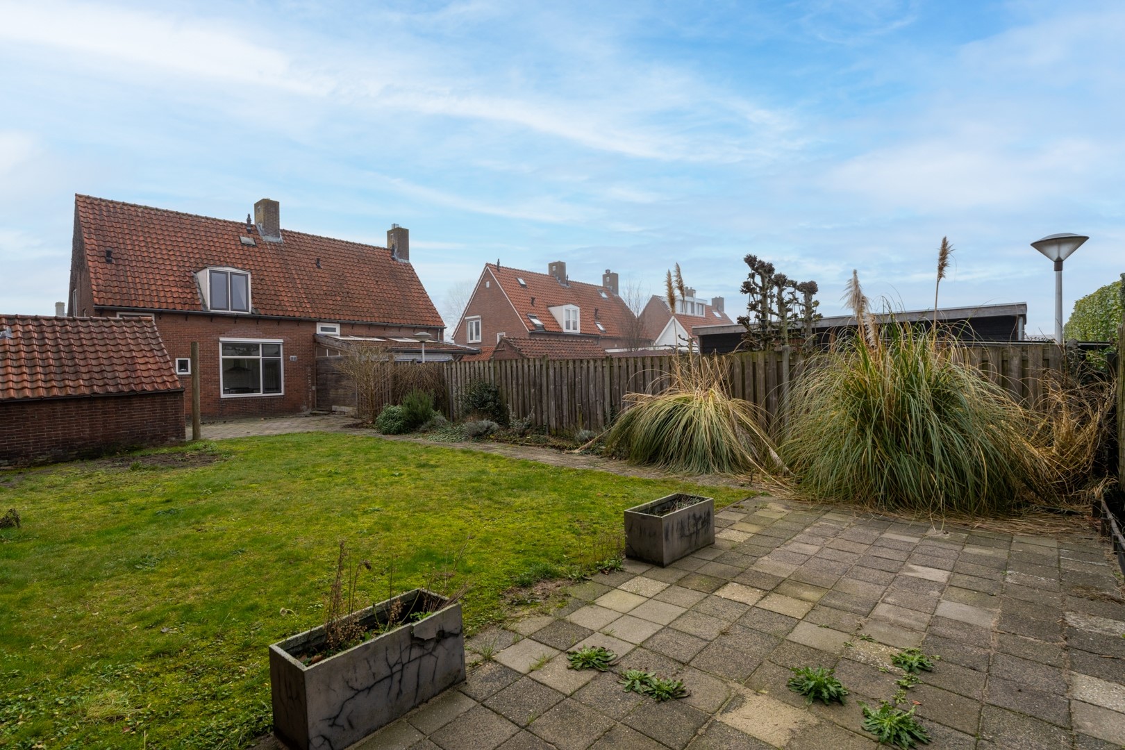 De diepe achtertuin is gelegen op het noorden, maar dankzij de lengte toch heerlijk zonnig. De tuin is grotendeels ingericht met gazon, straatwerk en plantenborders en beschikt over een fijne zandbak – perfect voor spelende kinderen. OP het perceel staat een handige berging en aan het huis vast vind je nog een grote schuur/garage. Aan de voorzijde is een ruime oprit aanwezig met plek voor meerdere auto’s.