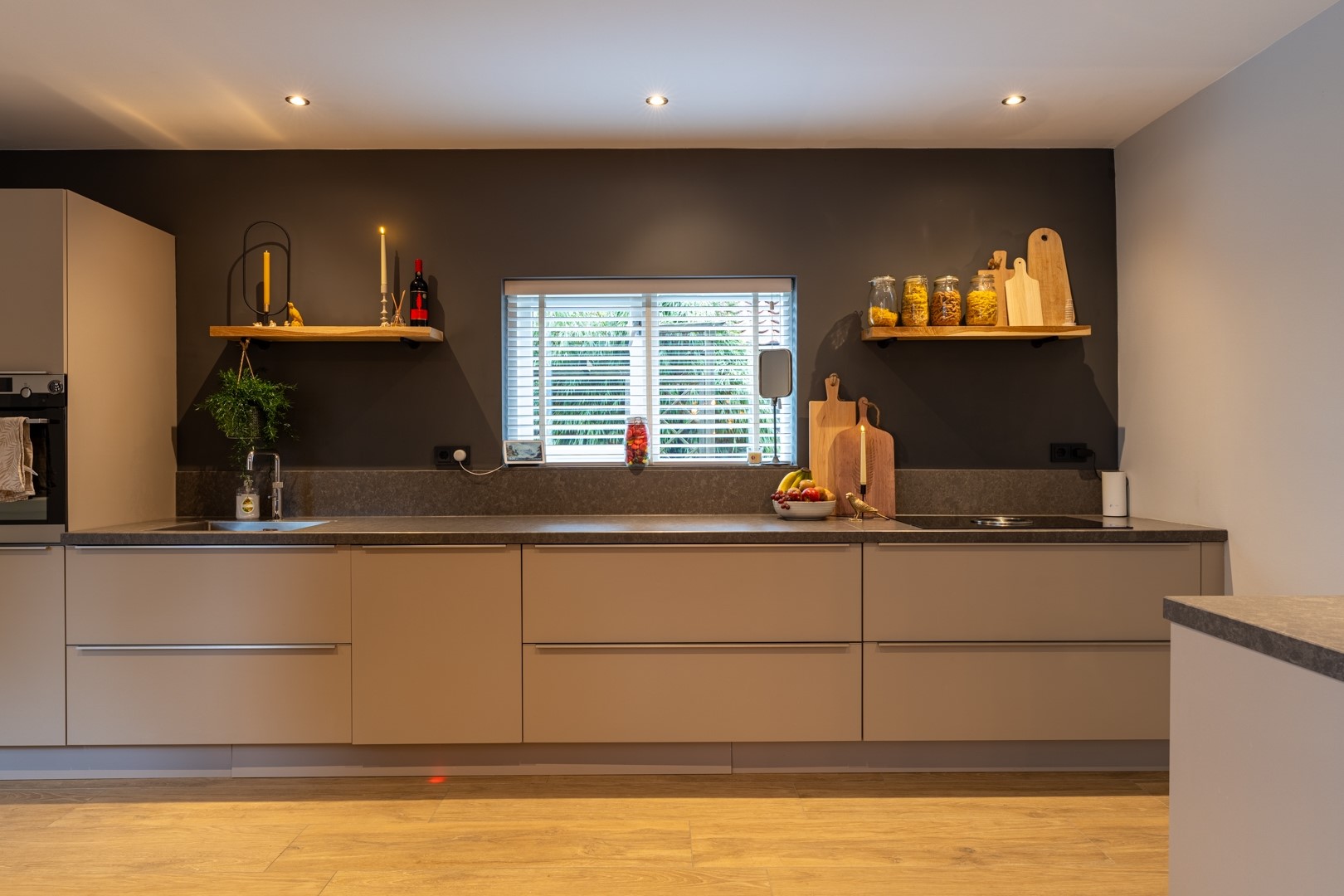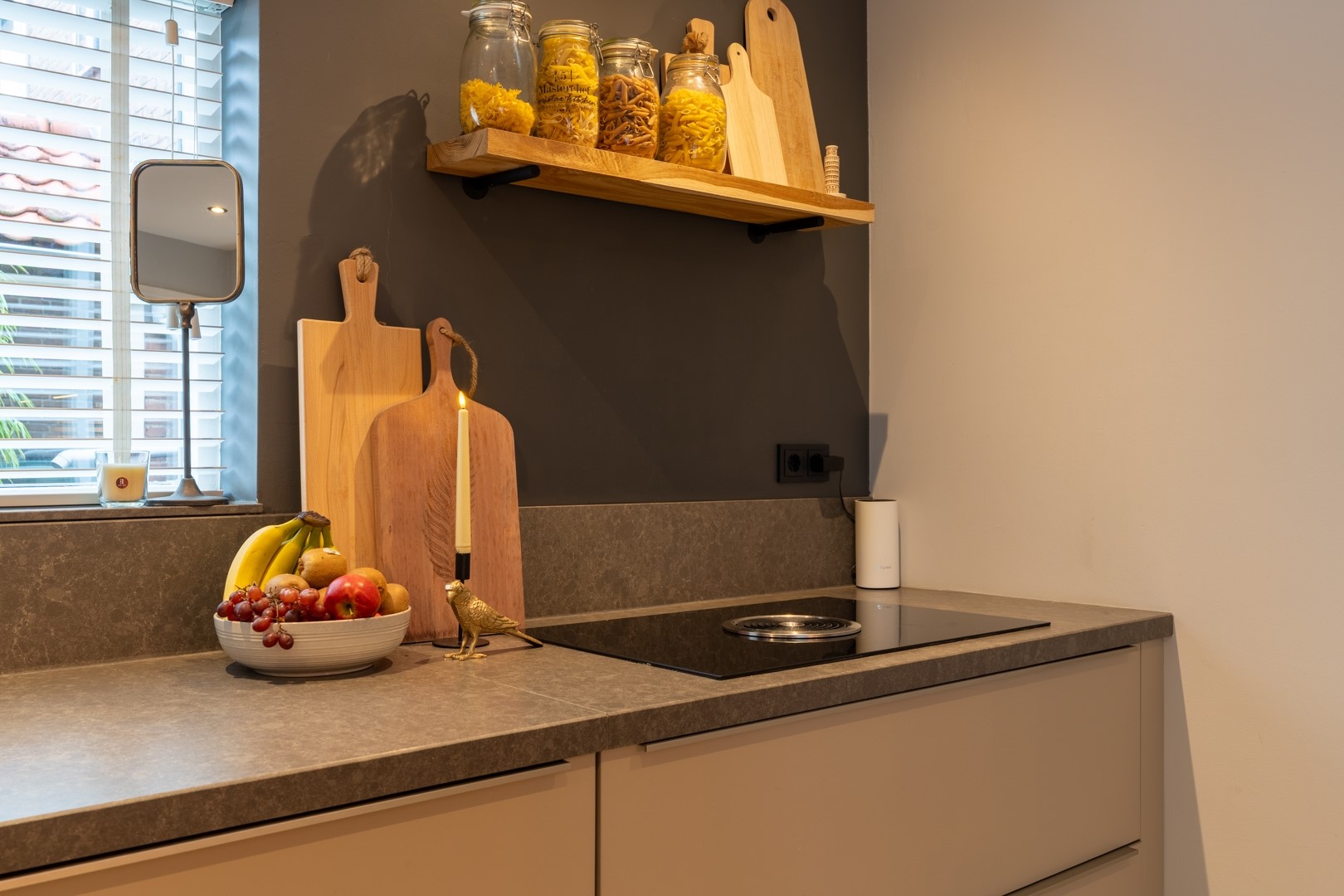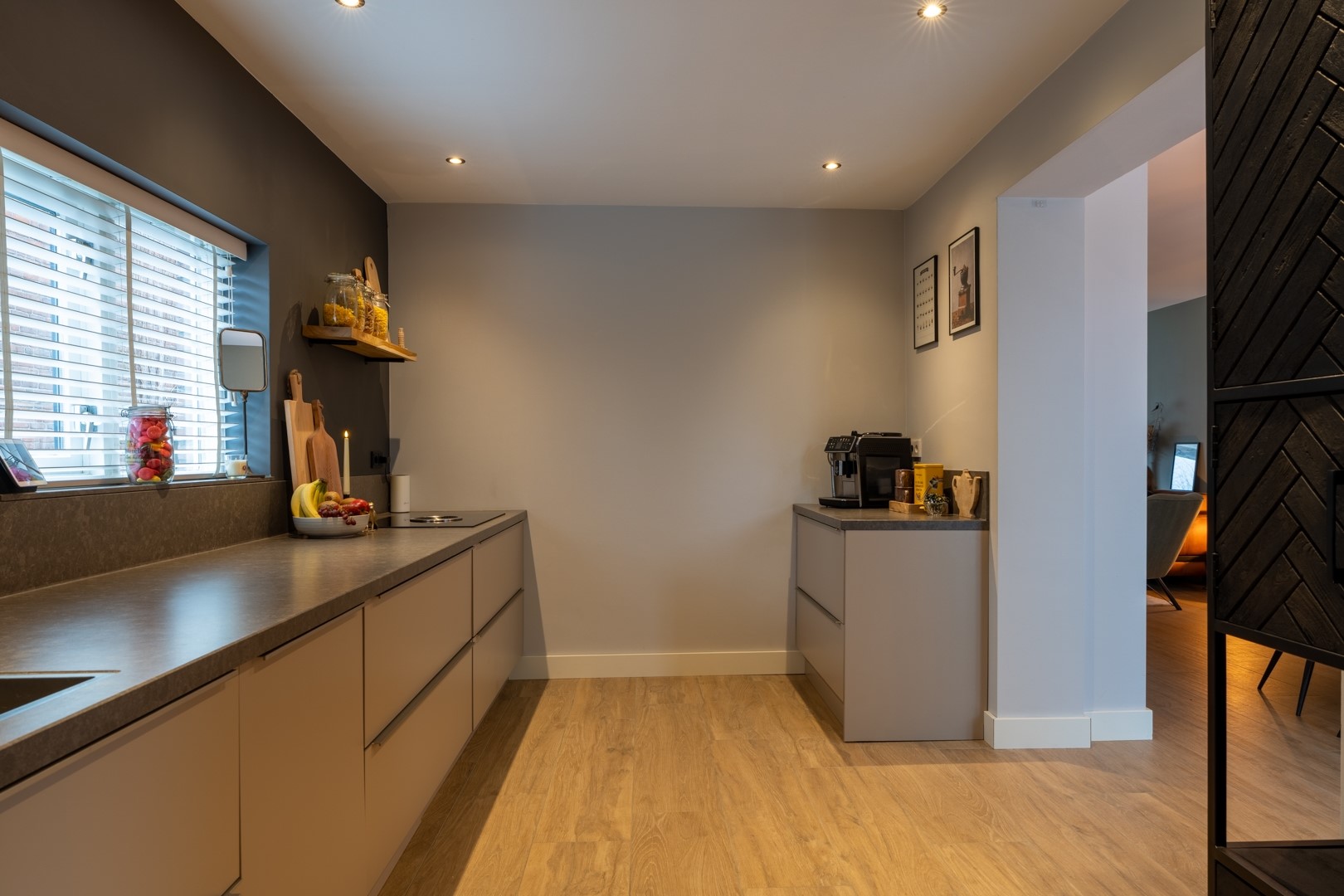 Wat een plaatje van een keuken! Luxe, modern en gezellig ingericht, inclusief een fijne koffiecorner. De keuken is voorzien van een koelkast, combimagnetron, vaatwasser, Quooker en een moderne Bora-kookplaat. Dankzij de open verbinding met de eethoek en woonkamer blijf je altijd in contact met je gezelschap. Aangrenzend bevindt zich de praktische bijkeuken met aansluitingen voor wasmachine en droger, én een modern toilet.