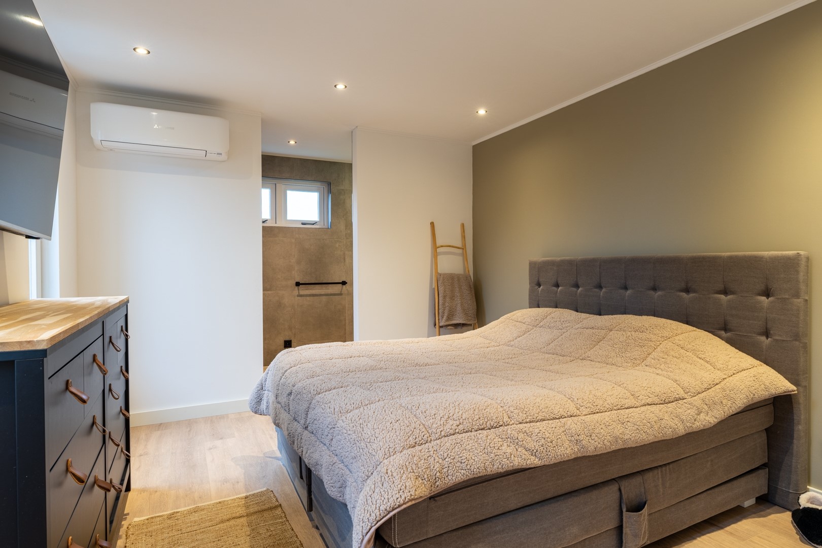 Door de uitbouw is hier een bijzonder comfortabele slaapverdieping ontstaan. Via de overloop en centrale gang bereik je vier slaapkamers, de badkamers en de trap naar zolder. Alle slaapkamers zijn voorzien van airconditioning. De master bedroom beschikt over een luxe badkamer en suite met royale inloopdouche (regen- en handdouche) en een stijlvol wastafelmeubel. De tweede badkamer is eveneens compleet ingericht met douche, wastafelmeubel en een tweede toilet. Ook de tweede verdieping is verrassend ruim: dankzij de dakopbouw is hier een royale overloop met veel kastruimte en een fijne extra slaapkamer gerealiseerd.