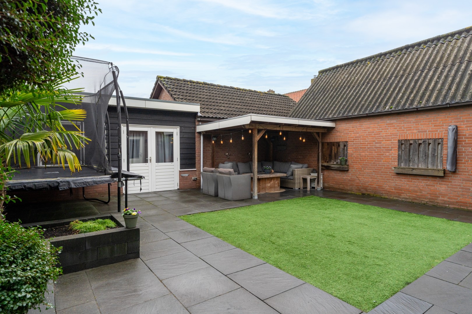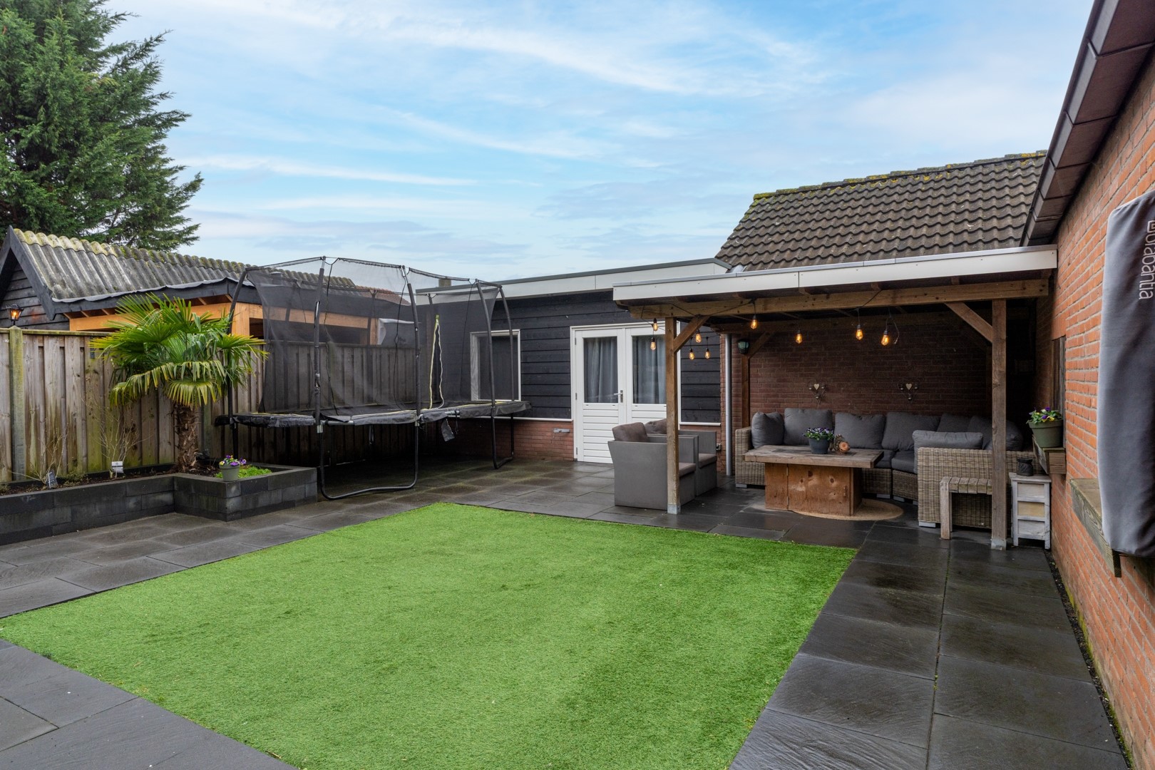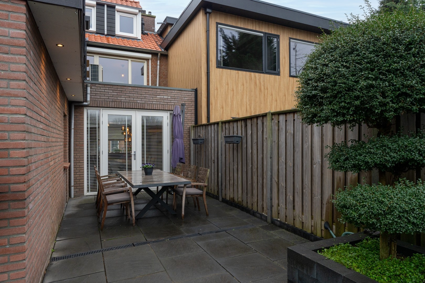 Aan de voorzijde is parkeergelegenheid op eigen terrein. De achtertuin is omsloten, onderhoudsvriendelijk en gunstig op de zon gelegen, waardoor je hier al snel én lang buiten kunt zitten. Achter op het perceel staat een grote, geïsoleerde stenen berging met dubbele openslaande deuren – ideaal voor opslag, hobby of werkruimte.