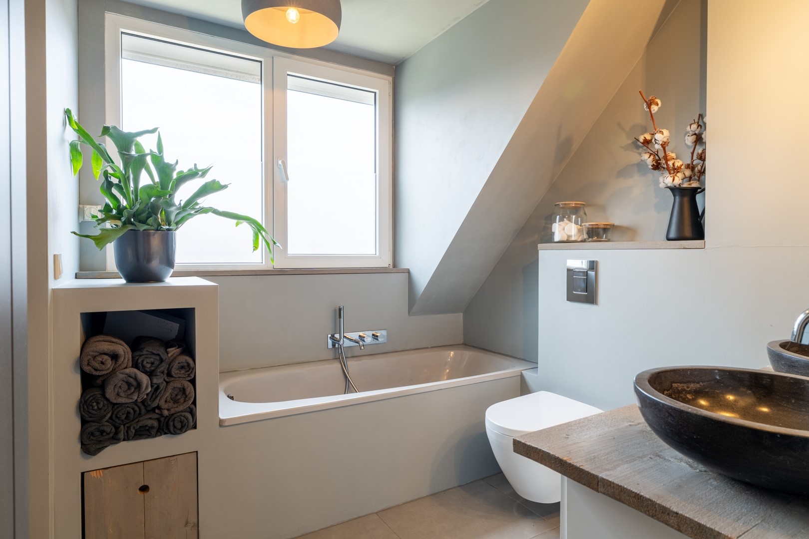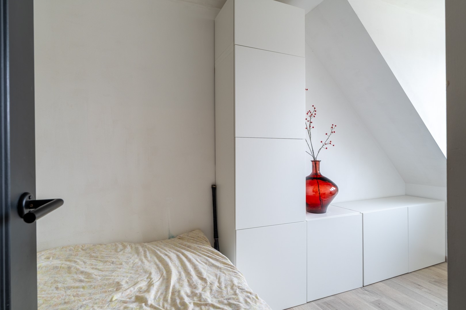 Op de begane grond bevindt zich een handige extra kamer met eigen douche en wastafelmeubel – perfect als comfortabele logeerkamer, praktijkruimte maar is ook zeer geschikt als bijvoorbeeld speelkamer. Aangrenzend vind je een praktische bijkeuken met washoek en een grote schuifkastenwand. De eerste verdieping telt drie lichte slaapkamers met vaste kasten én een moderne badkamer: ligbad, toilet, dubbele wastafelmeubel, stortdouche met sunshower. Op de tweede verdieping is er een ruime ouderslaapkamer met dakkapel, dakraam en vaste kastruimte.