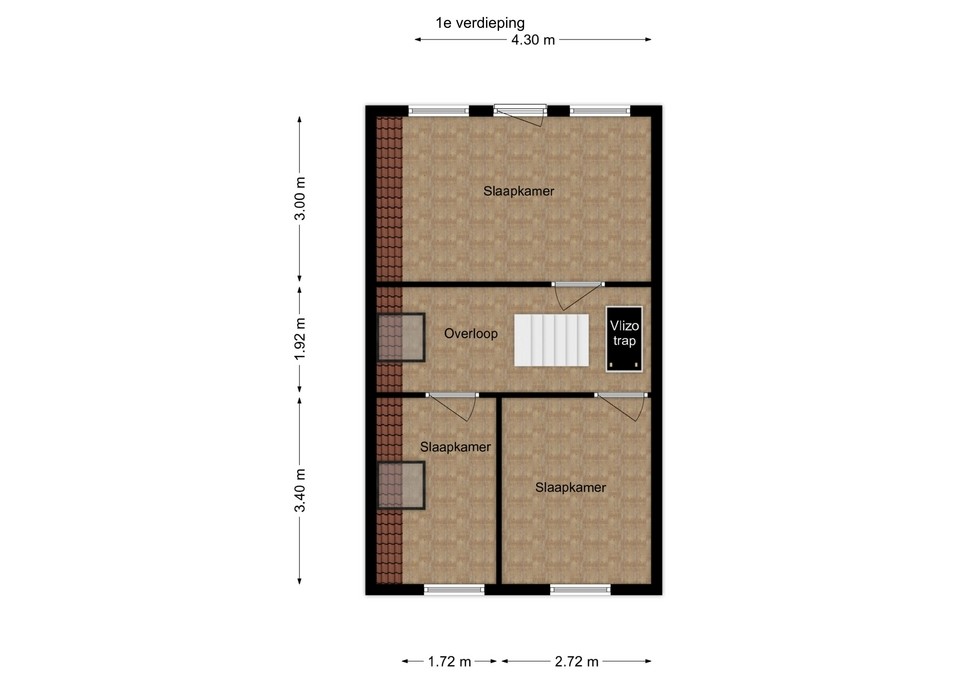 Overloop met vlizotrap naar de zolder en 3 slaapkamers.