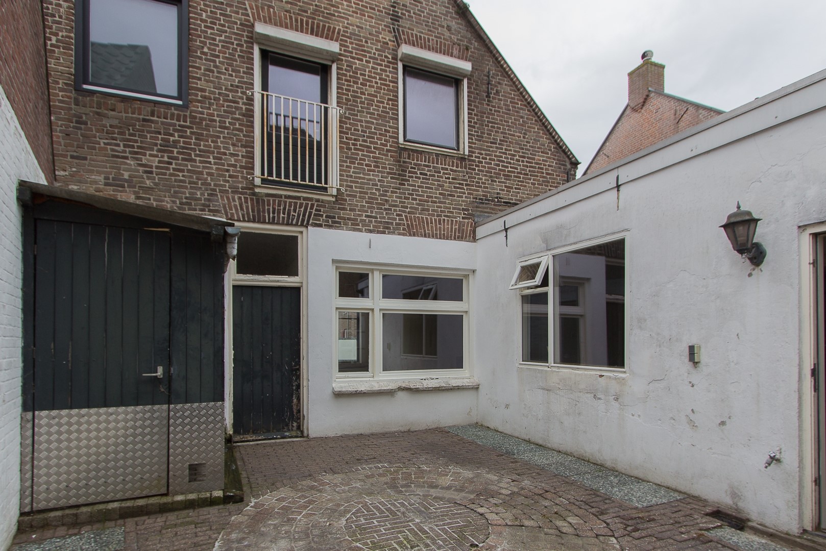 De omsloten achtertuin is ingedeeld met terras en sierbestrating en schuurtje. Aan de zijkant van de woning bevindt een aanpandige berging (7.80 x 1.42 meter) met achterom, deze wordt aan de voorzijde afgesloten middels een poort welke aan de straatzijde uitkomt.