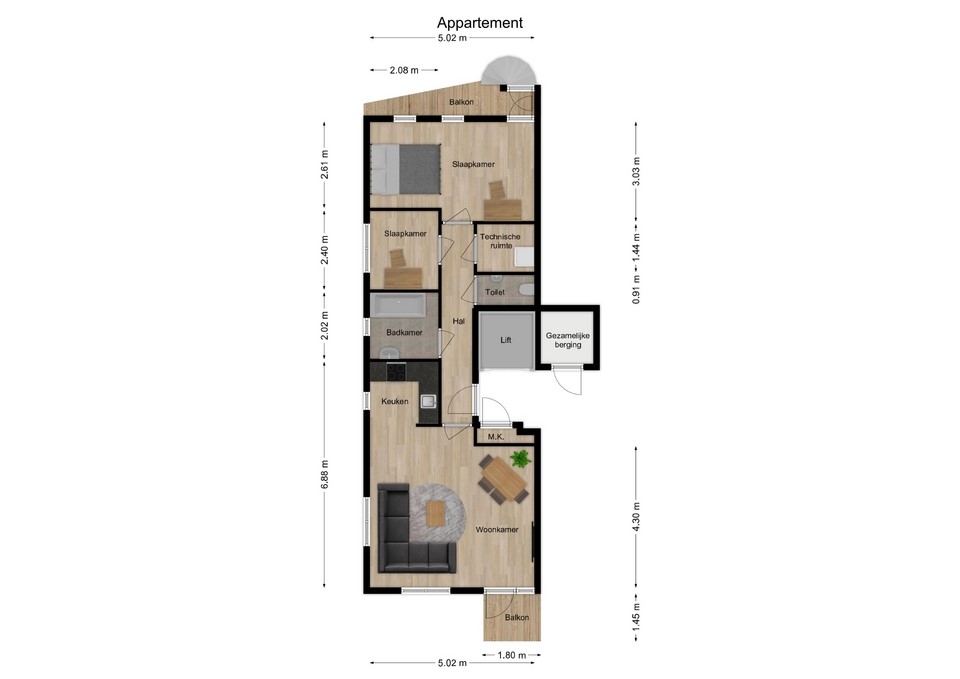 • Twee balkons (voor- en achterzijde)