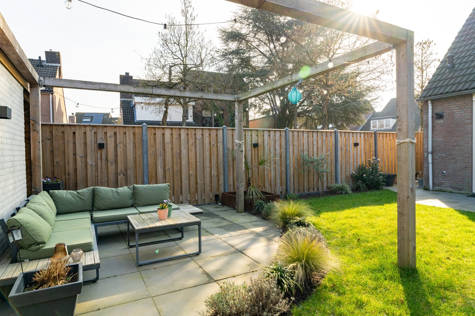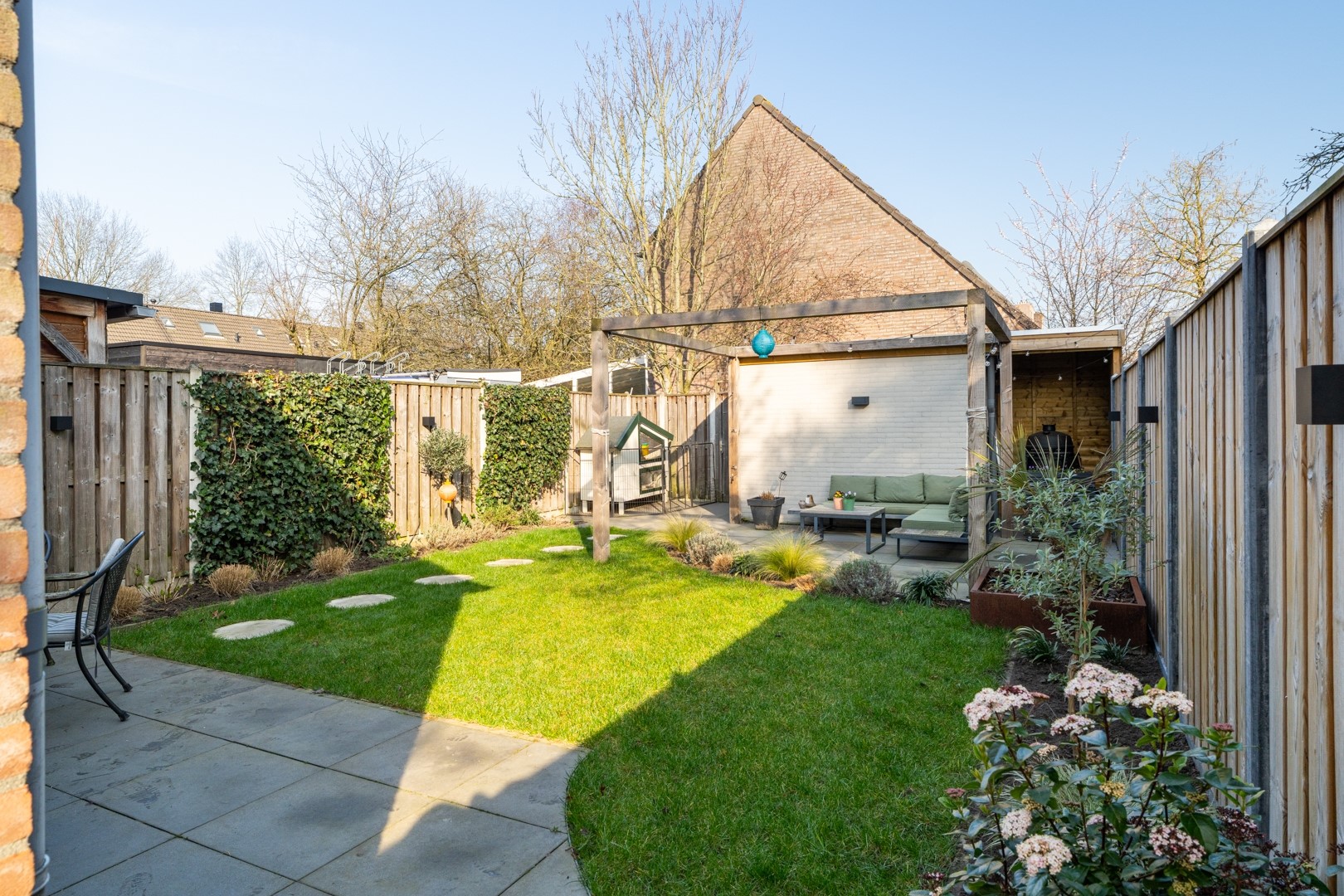 De omsloten achtertuin met achterom is gelegen op het noorden, het betreft een diepe achtertuin waardoor er de hele dag zon is, de tuin is speels ingedeeld met leuke staptegels, plantenborders en gazon. Achterop het perceel bevindt zich de stenen berging met de optie om deze in een garage om te zetten (wel dient hier dan een vergunning voor aangevraagd te worden). De woning beschikt over een dubbele achterom, aan de achterzijde en aan de zijkant van de woning.