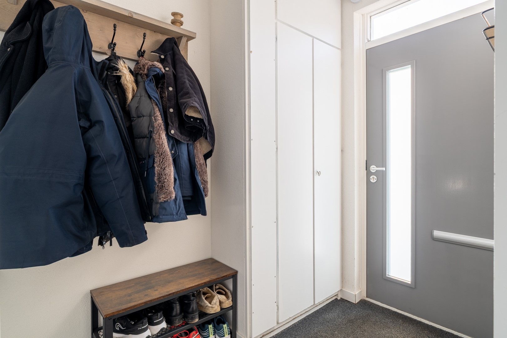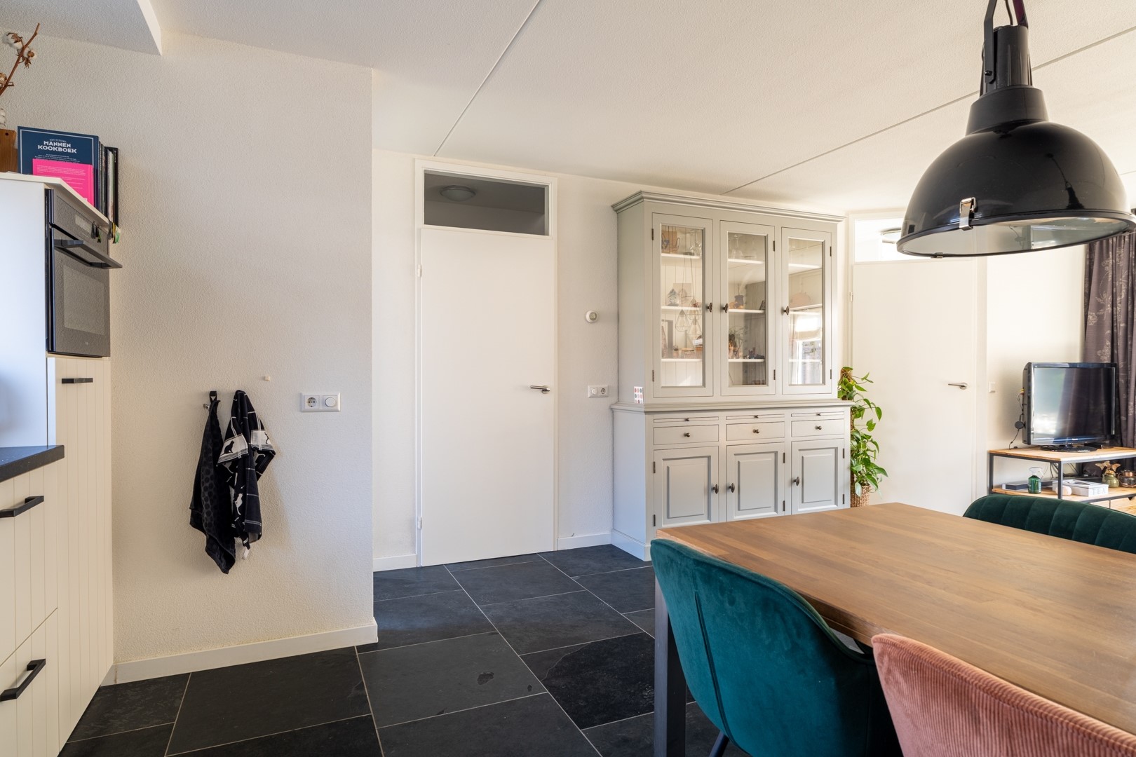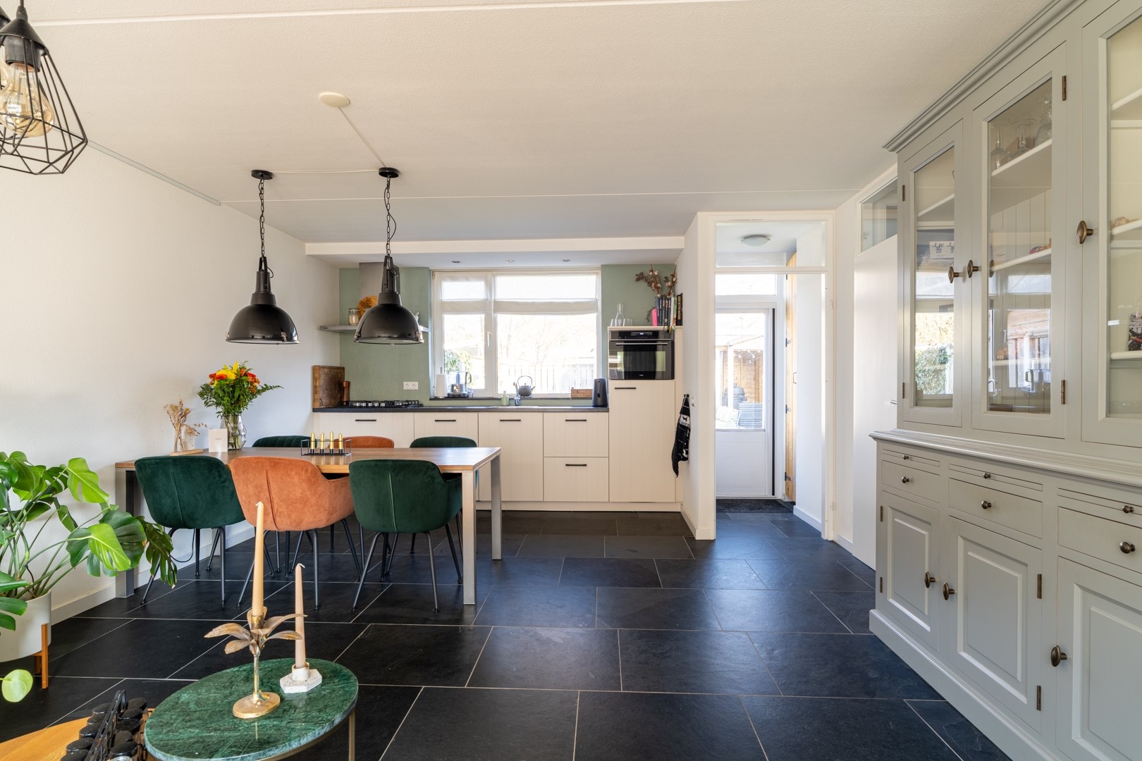 Hal en meterkast, toilet met fontein, gezellige woonkamer, open keuken met rechte opstelling voorzien van inbouwapparatuur zoals gaskookplaat, afzuigkap, combimagnetron, oven, vaatwasser en koelkast, ideale provisie/ trapkast, tussenportaal met trapopgang naar de verdieping en toilet, achterportaal met CV-kast (ketel 2021), koffiehoek en middels een loopdeur is er toegang naar de achtertuin.