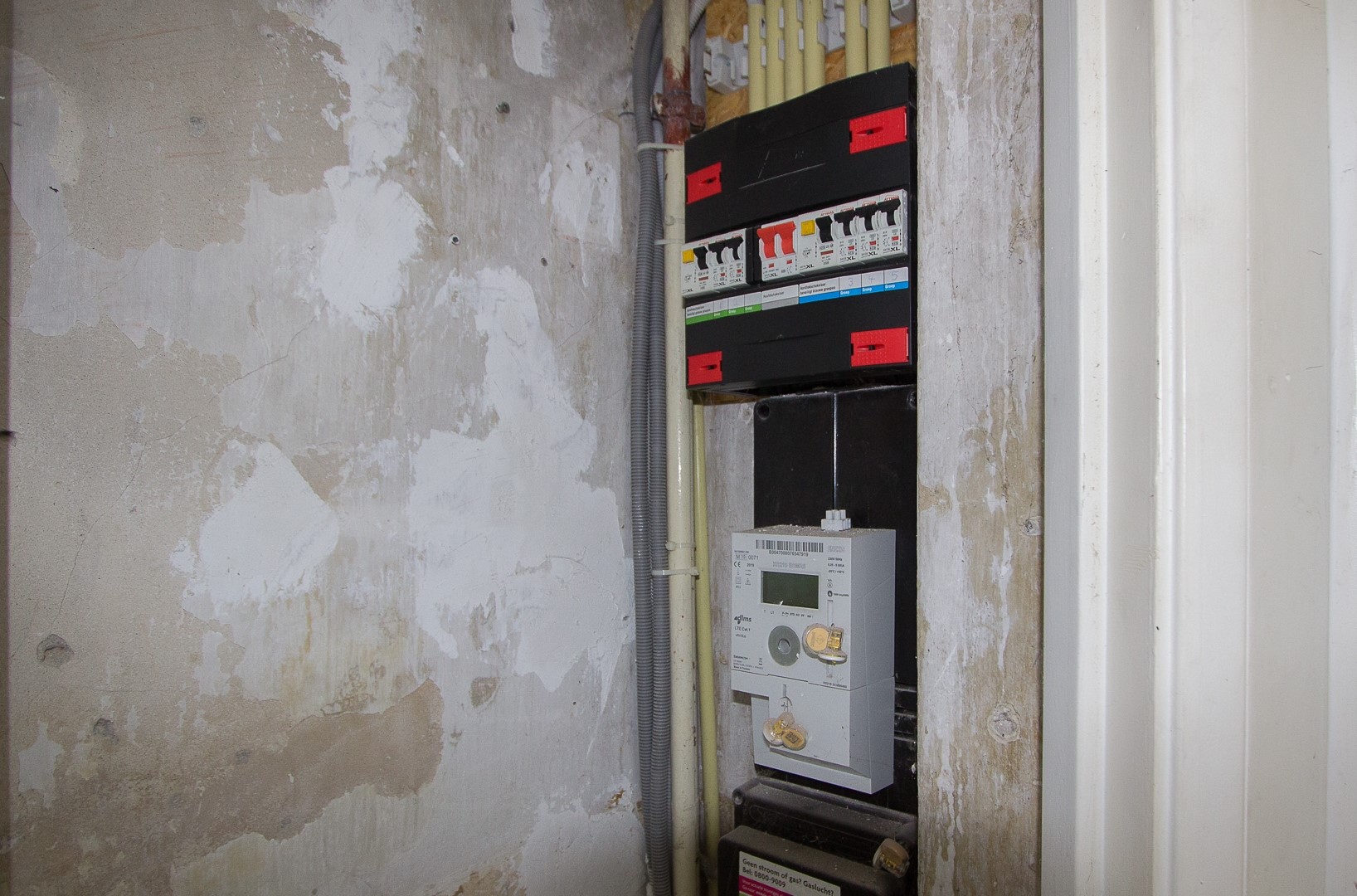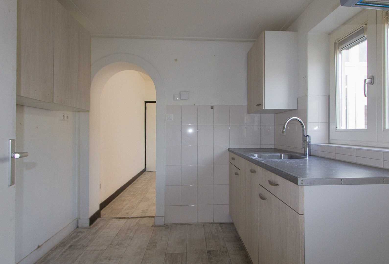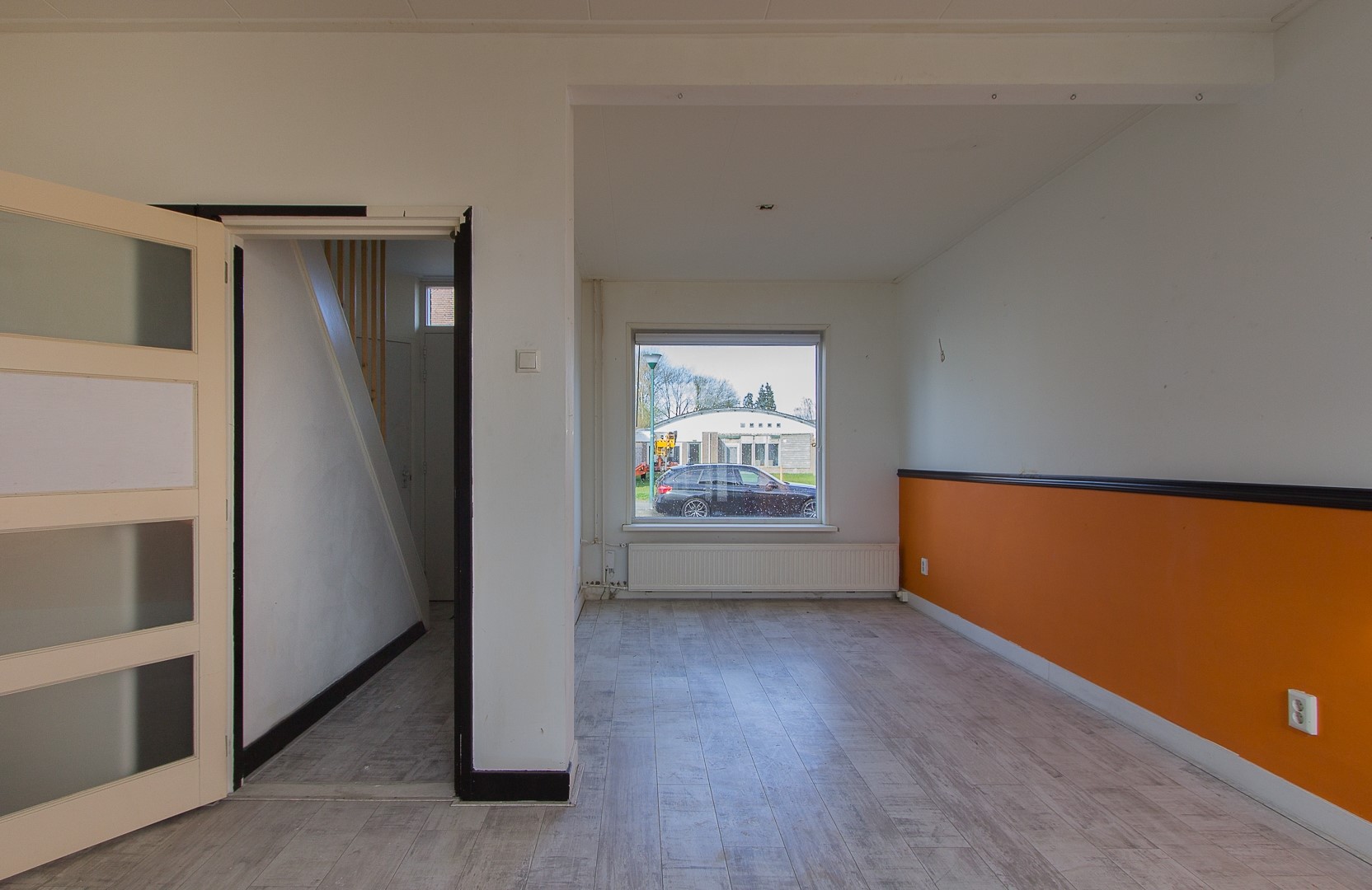 Je komt binnen in de hal met meterkast en loopt door naar de woonkamer. Aansluitend vind je de halfopen, eenvoudige keuken. Vanuit de keuken kom je in een portaal met de cv-ketel en een deur naar de tuin.