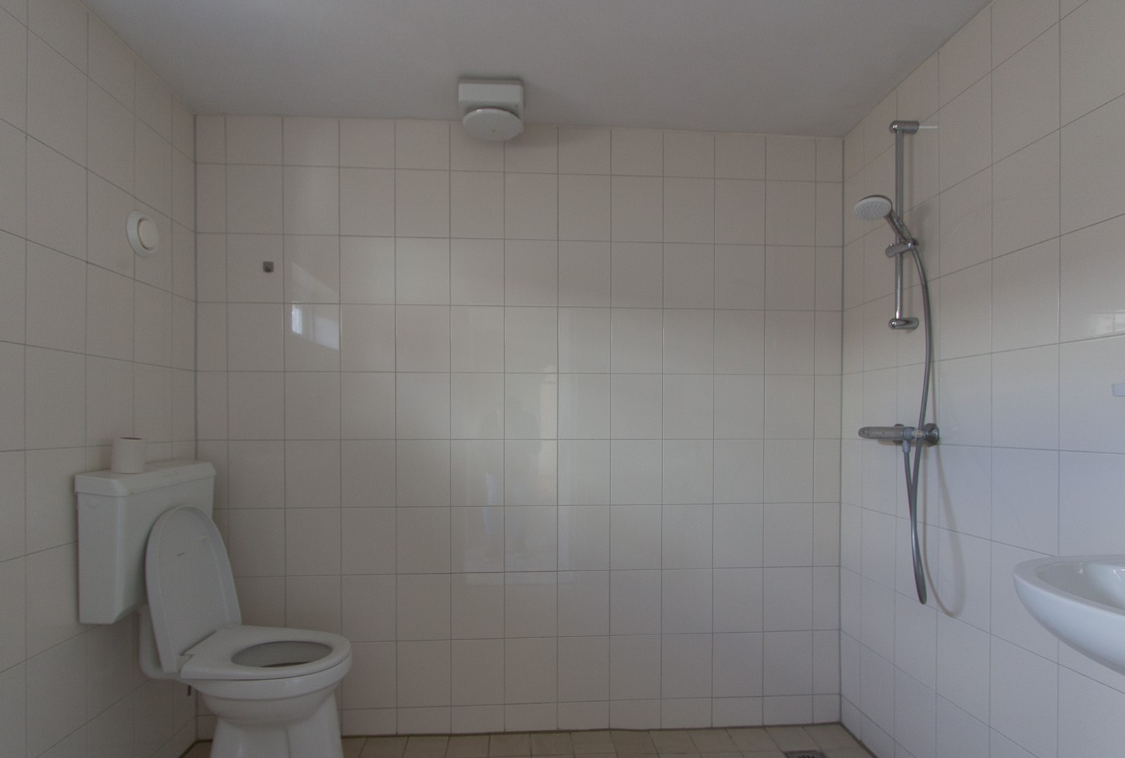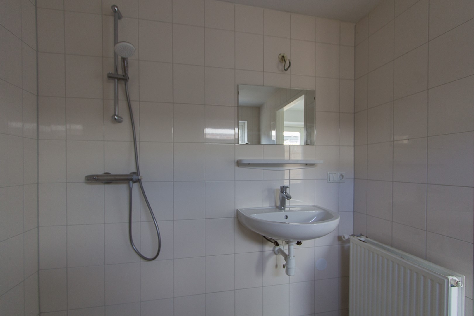 De badkamer bevindt zich op de begane grond en is voorzien van een douche, toilet, wastafel en aansluiting voor de wasmachine.