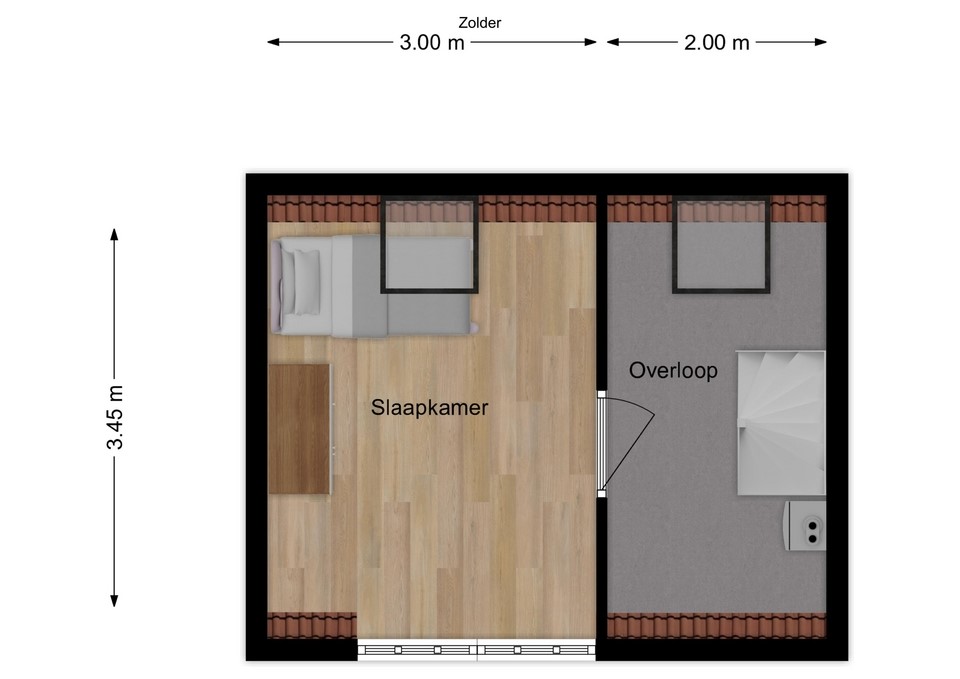 Ruime zolderetage bereikbaar via een vaste trap. Op de voorzolder bevindt zich de CV-opstelling (type ATAG HR, bouwjaar 2017) en wasmachineaansluiting. De extra slaapkamer met dakkapel en groot Velux dakraam is ook prima bruikbaar als hobbykamer. Boven de slaapkamer bevindt zich een extra bergzoldertje.