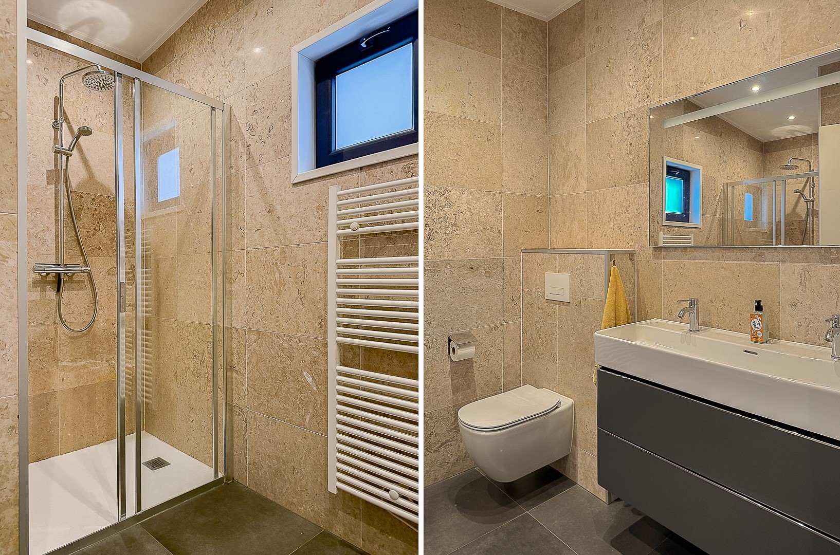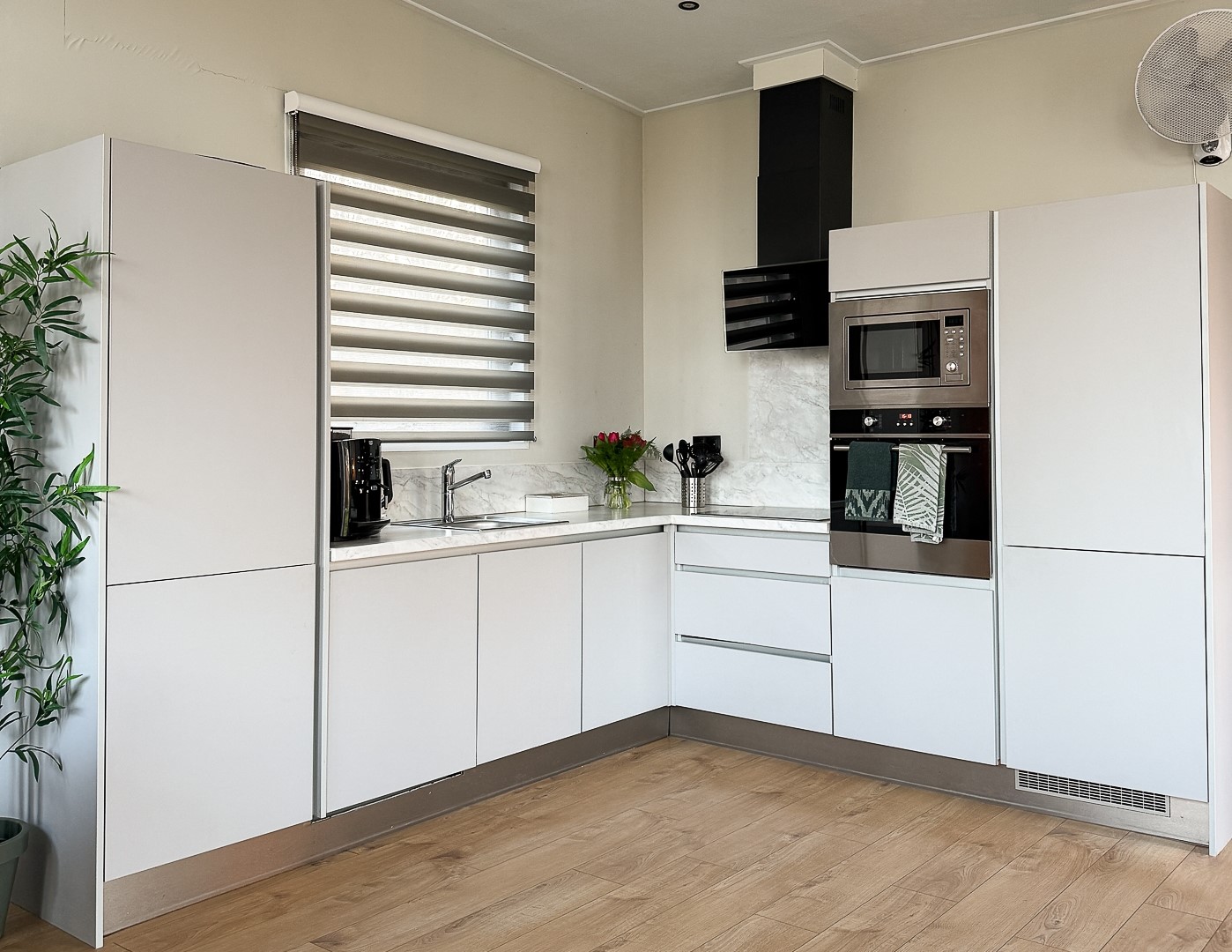 De woning is praktisch en comfortabel ingedeeld en beschikt over drie slaapkamers, een sfeervolle badkamer met toilet, een moderne keuken die van alle gemakken is voorzien en een separate toilet in de hal. Alles is verzorgd afgewerkt, waardoor het chalet direct te gebruiken is zonder dat er nog werkzaamheden nodig zijn.
