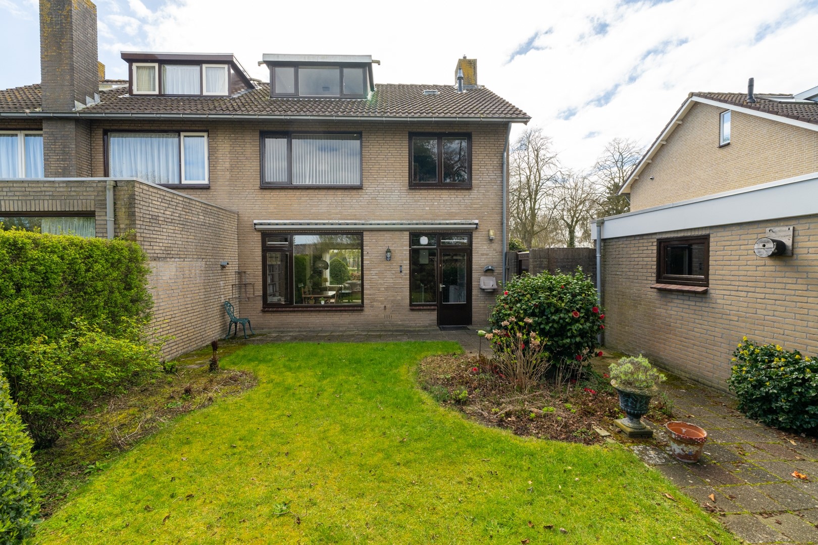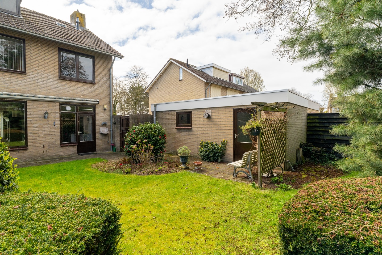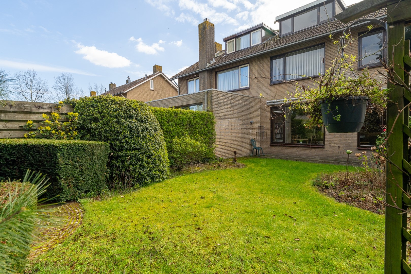 De woning beschikt over een ruime voor- en achtertuin. De voortuin is fraai aangelegd en voorzien van diverse beplanting, wat zorgt voor een levendig geheel. De prachtige boom biedt daarbij niet alleen sfeer, maar ook de nodige privacy. De achtertuin is omsloten, groen ingericht door verschillende planten en biedt volop privacy. Dankzij de diepte van de tuin is er altijd een fijne plek in de zon of schaduw te vinden.