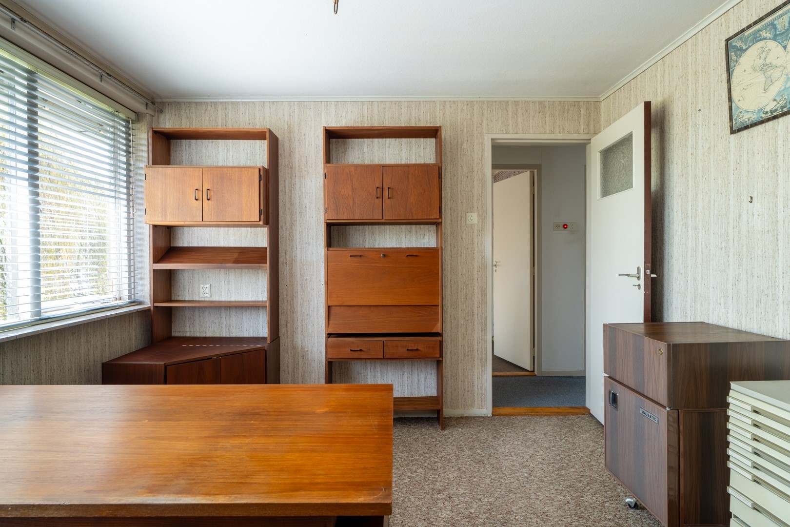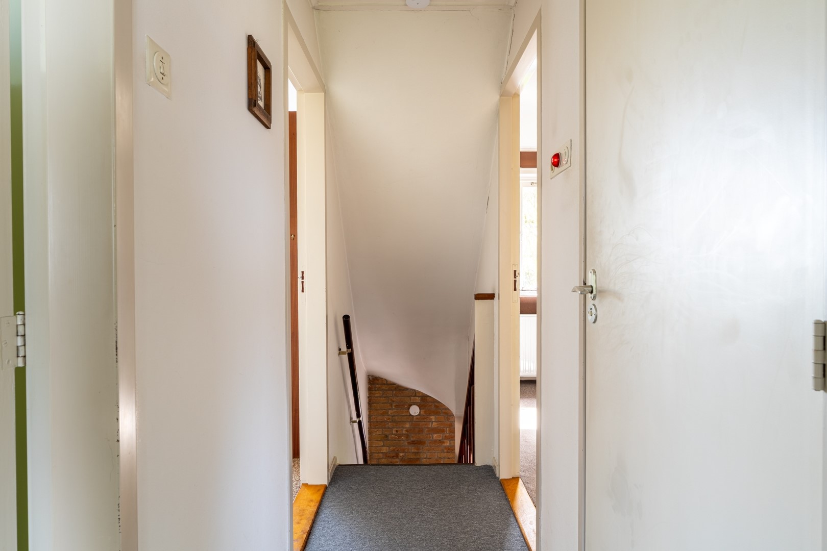 De hal/entree geeft toegang tot de trapopgang, toiletruimte, meterkast, keuken en de woonkamer. De woonkamer is ruim en heeft veel lichtinval. Aan de voorzijde heeft u een vrij en groen uitzicht, wat zorgt voor een prettig en ruimtelijk gevoel. De openhaard maakt het zitgedeelte extra sfeervol.
