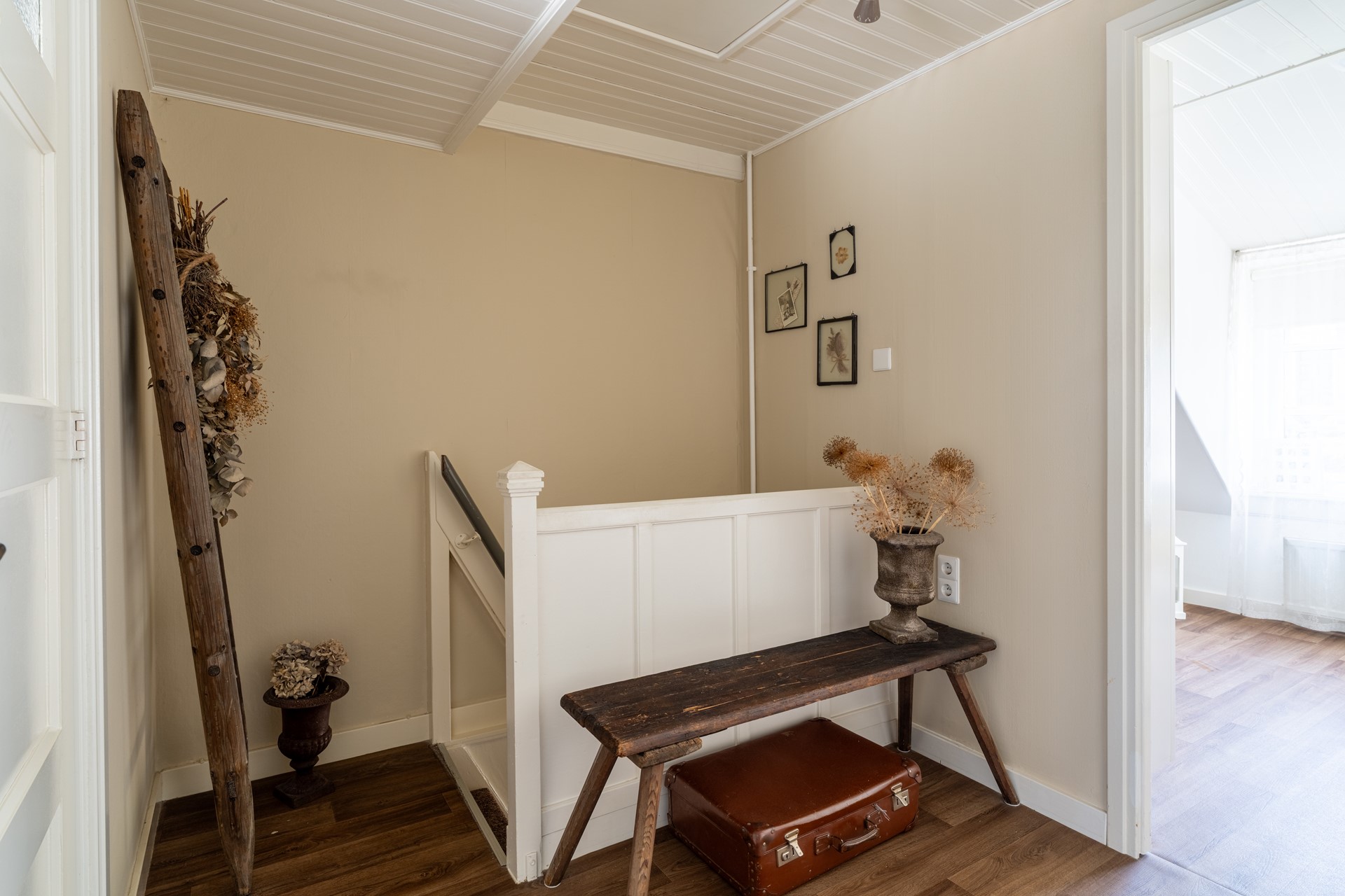 Via een vlizotrap bereiken wij de bergvliering, waar tevens de Vaillant-combiketel (2007) is geplaatst. Een praktische ruimte voor opslag.