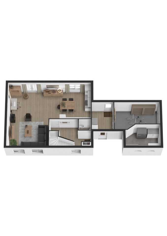 En die garage is méér dan een garage alleen. Een deel dient als berging, een ander deel is omgetoverd tot een echte bourgondische ruimte met extra keukenopstelling (gaskookplaat, afzuiging enzovoort). Perfect voor kookliefhebbers, feestjes of een zomerse barbecue-voorbereiding. Boven de garage vind je bovendien een ruime verdieping die multifunctioneel inzetbaar is.