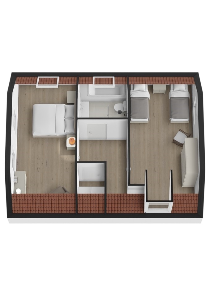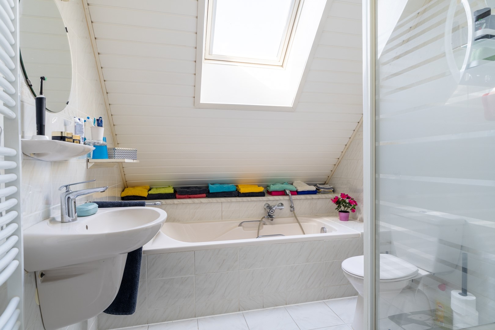Op de eerste verdieping van de woning vind je twee ruime slaapkamers en een nette badkamer. Deze badkamer is compleet uitgerust met een ligbad, douche, wastafel en een toilet. Alles wat je nodig hebt, overzichtelijk bij elkaar. Boven de garage bevindt zich nog een royale verdieping die eenvoudig kan worden ingericht als extra slaapkamer(s), hobbykamer of kantoorruimte. Hier ligt dus nog volop potentie voor uitbreiding.