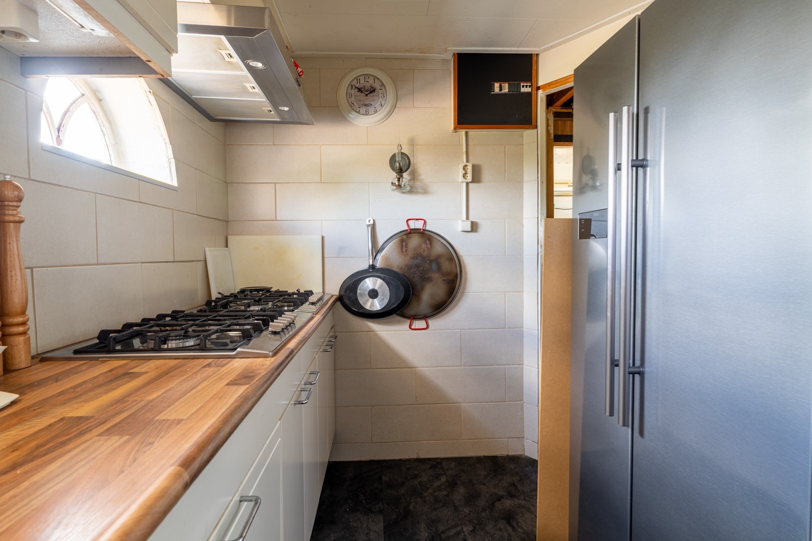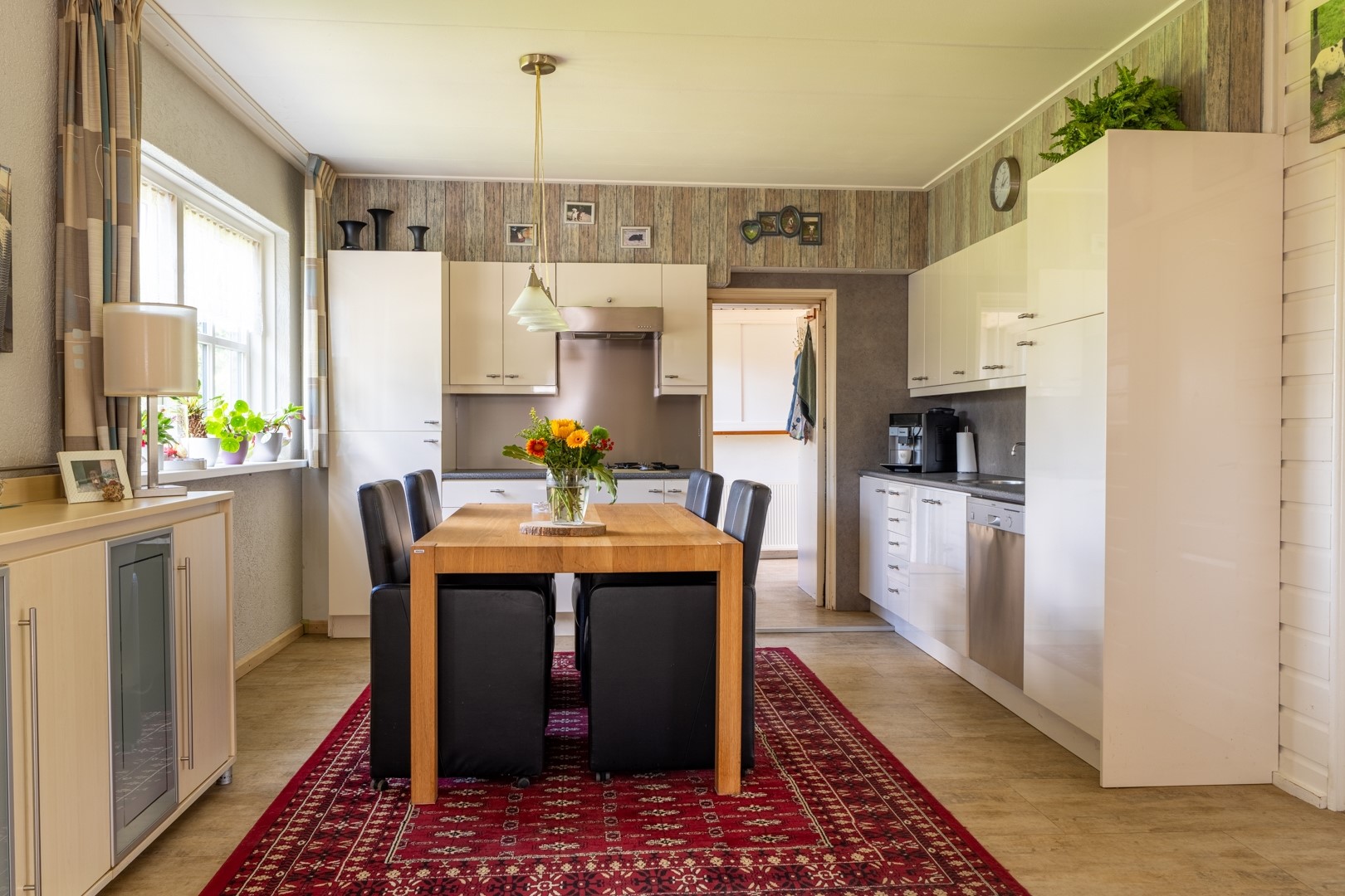 De keuken is praktisch én gezellig ingericht, met een nette dubbele opstelling voorzien van alle gemakken en volop bergruimte. Hier kun je met gemak een grote eettafel kwijt: ideaal voor lange diners en gezellige avonden met vrienden of familie. Vanuit de keuken heb je toegang tot de bijkeuken, een bijzonder praktische ruimte met een extra keukenblokje en een spoelbak. Vanuit hier loop je zo door naar buiten maar de achtertuin of naar de straat., Ook is vanuit deze bijkeuken de garage toegankelijk.
