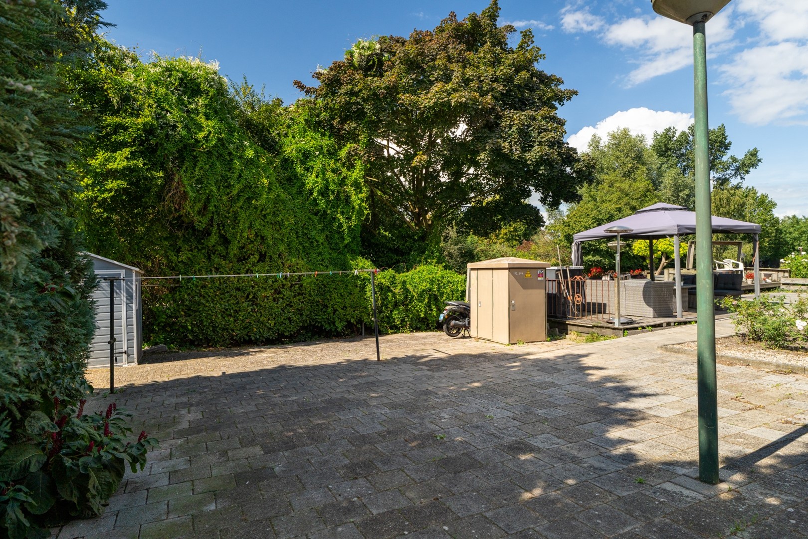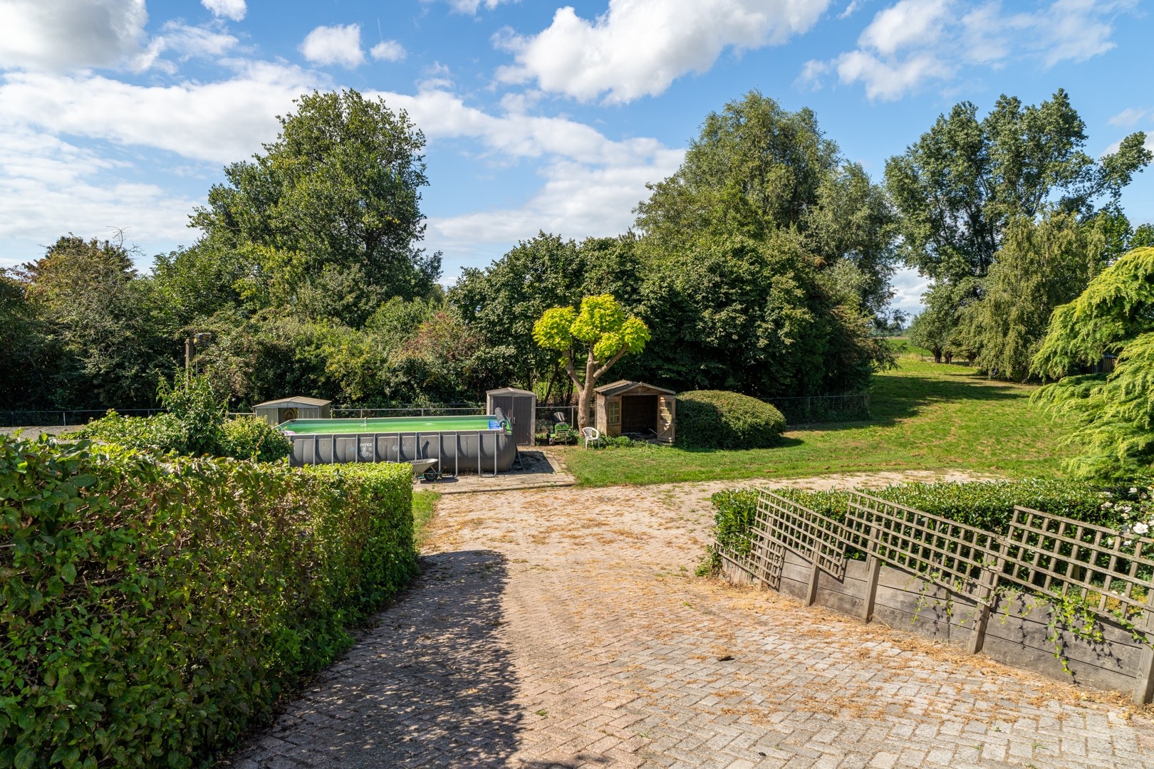 Buiten is het één groot feest voor liefhebbers van ruimte en natuur. Achter de woning ligt een L-vormig perceel dat grotendeels in gebruik is als dierenweide. Paarden, pony’s, schapen, geiten – je kunt hier werkelijk alle kanten op. Liever een grote moestuin? Je hebt plek zat om je eigen mini-boerderij te creëren. Of zie je jezelf al langs de lijn staan bij een potje voetbal op je eigen veld? En als de zon zich laat zien, wordt het buitenleven nóg beter: in de tuin ligt een heerlijk zwembad met verwarmingsinstallatie en waterrobot. Zo geniet je van een frisse duik wanneer je maar wilt. Zomers voelt het hier als vakantie in eigen tuin.