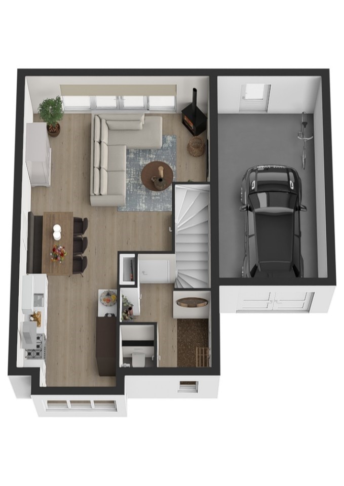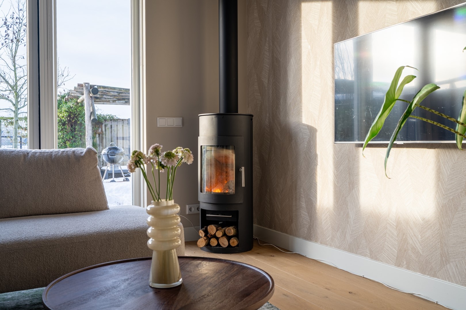Via de hal met meterkast, toilet en trapopgang betreed je de lichte en ruime woonkamer. Een fijne ruimte met o.a. houtkachel en een recent geschuurde houten vloer. De openslaande tuindeuren zorgen voor een direct contact met de achtertuin, wat zorgt voor een fijne verbinding tussen binnen en buiten. Verder vind je onder de trap een praktische trapkast met daarin de cv-installatie.