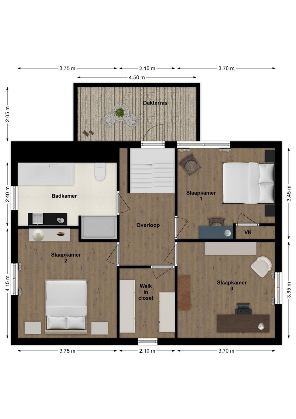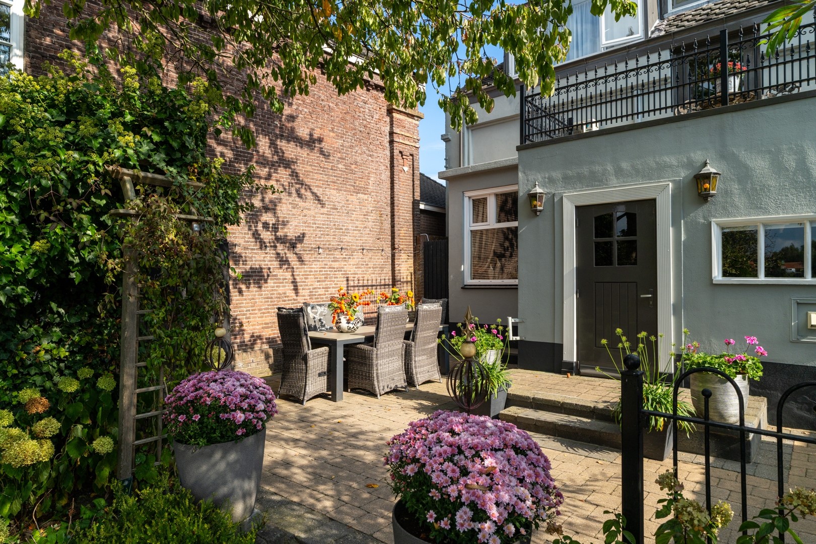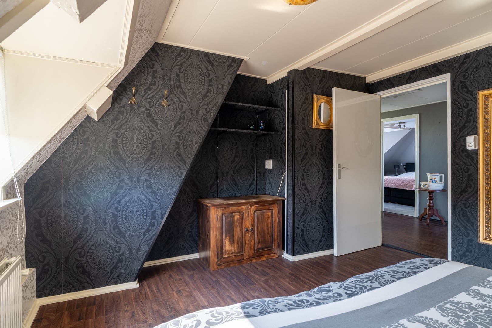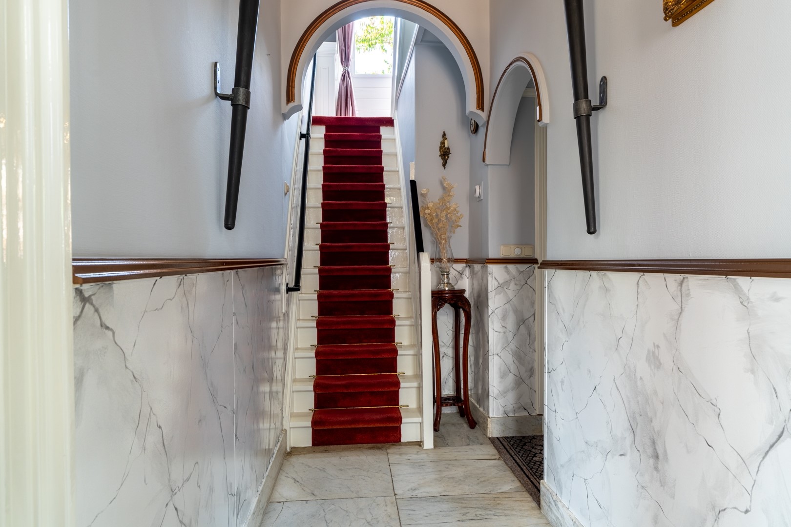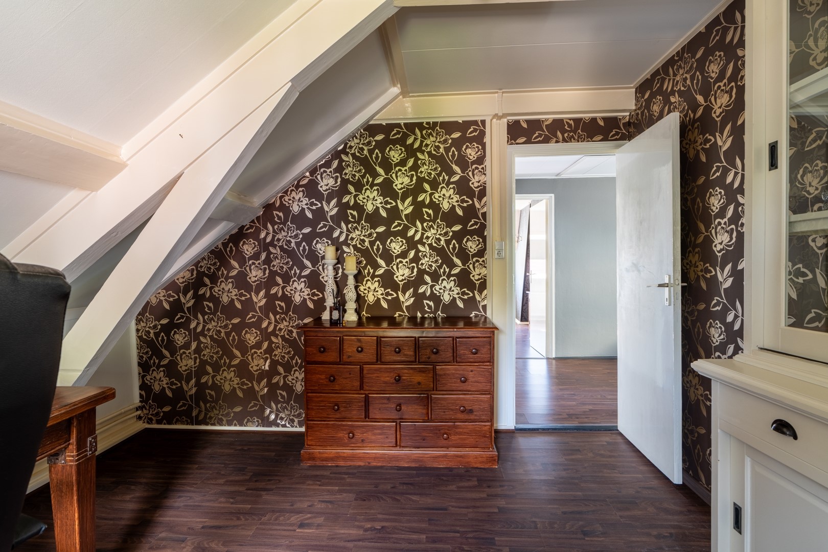 Via de klassieke borderstrap ga je naar boven, waar je meteen uitkomt bij het dakterras. Wat een plek! Op deze verdieping vind je vier grote slaapkamers én een complete badkamer met inloopdouche, ligbad, tweede toilet en een mooi wastafelmeubel. Via de overloop is er ook nog een vlizotrap naar de bergzolder.