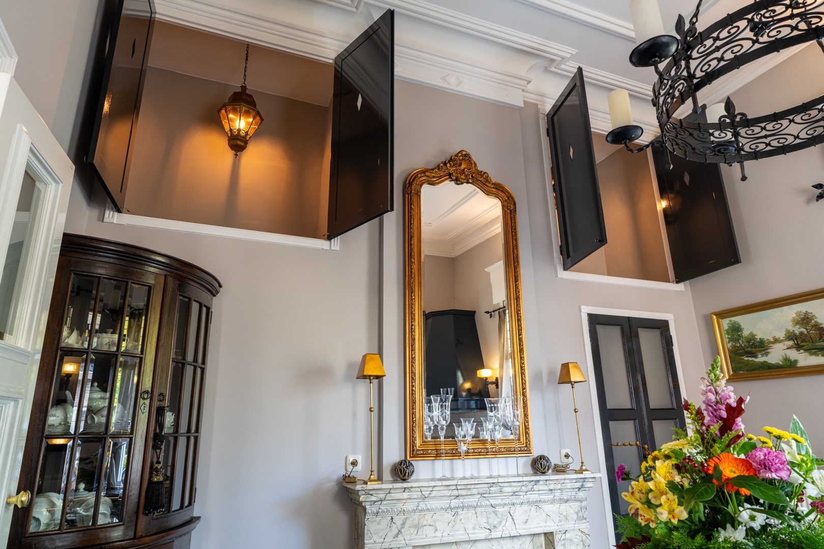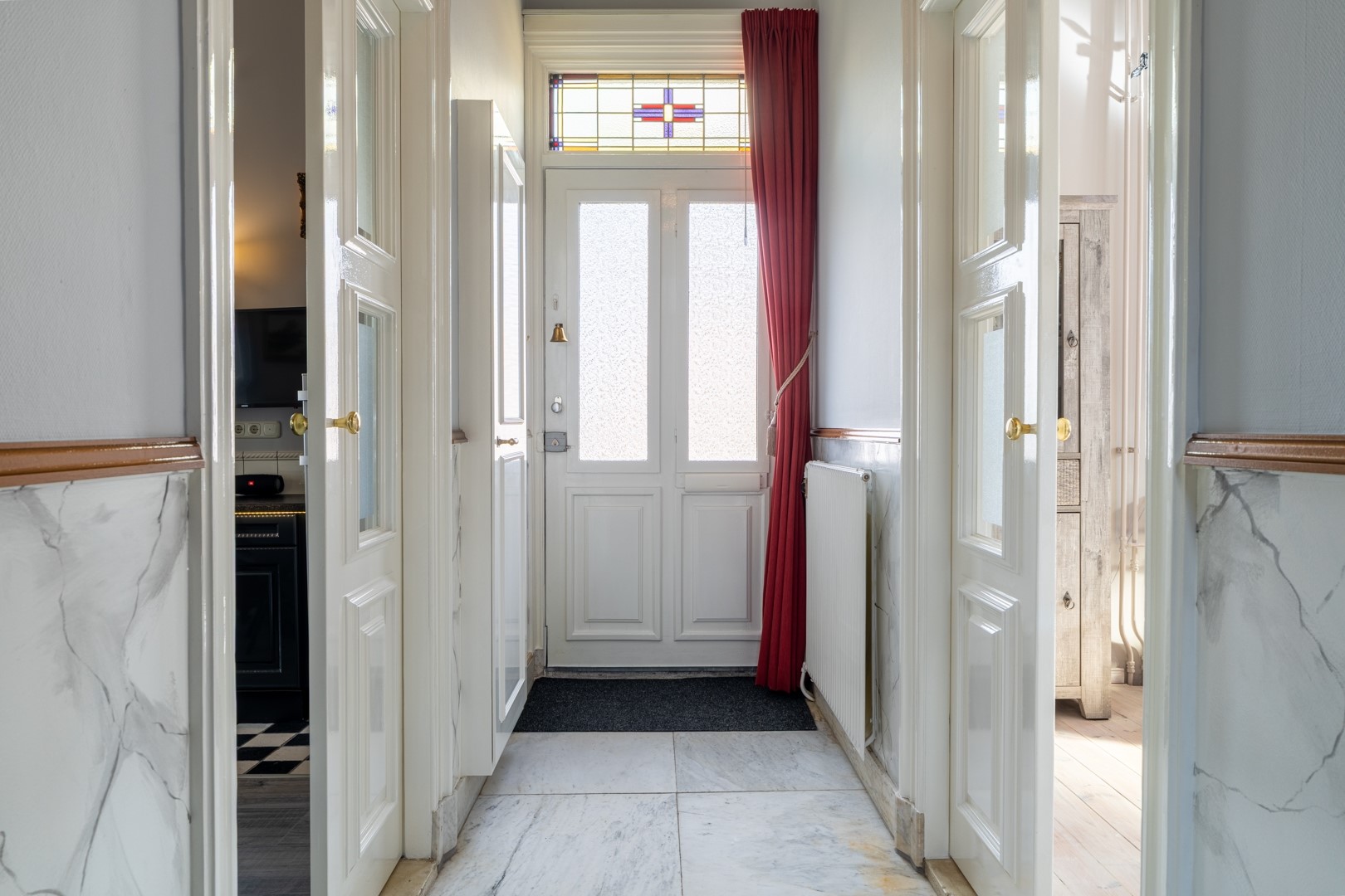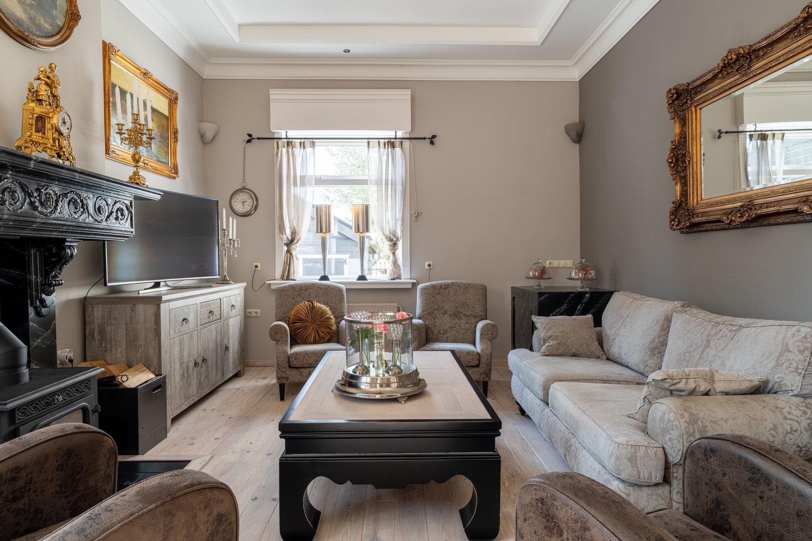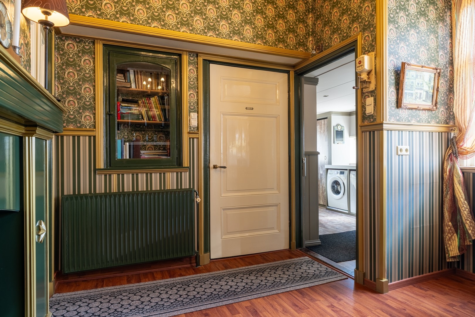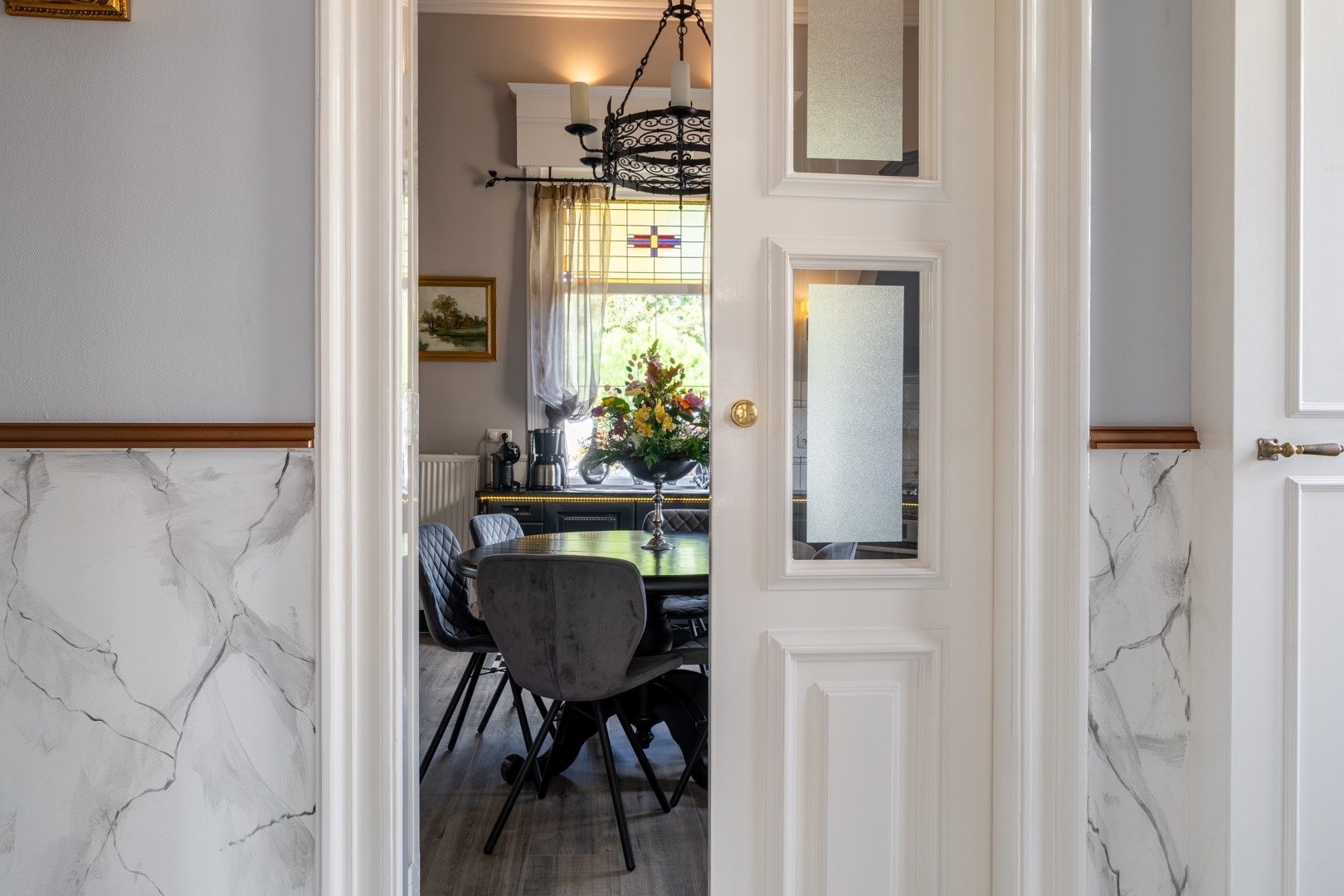 De entree maakt meteen indruk: hoge plafonds, mooie lichtinval en een sfeer van weleer. De woonkamer en woonkeuken zijn af te sluiten met stijlvolle paneeldeuren. De woonkamer zelf is licht, ruim en heerlijk hoog (3,5 meter!) – perfect om lekker te ontspannen bij de houtkachel.
