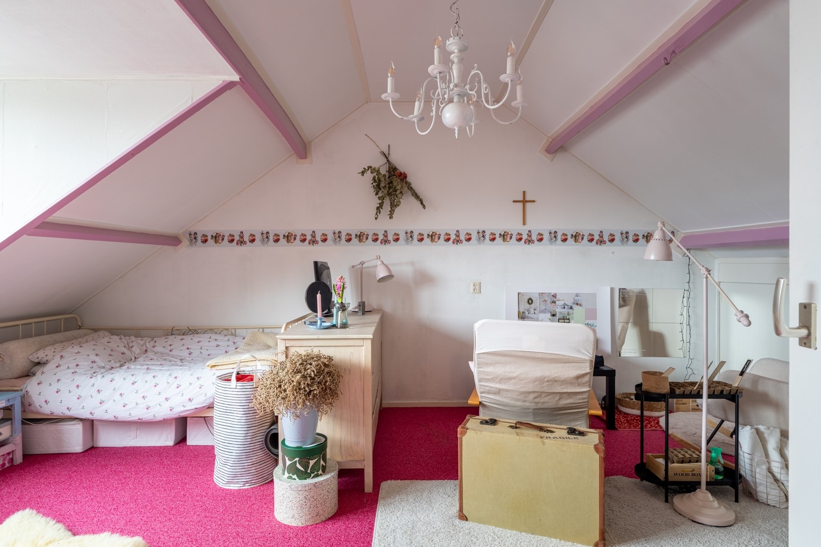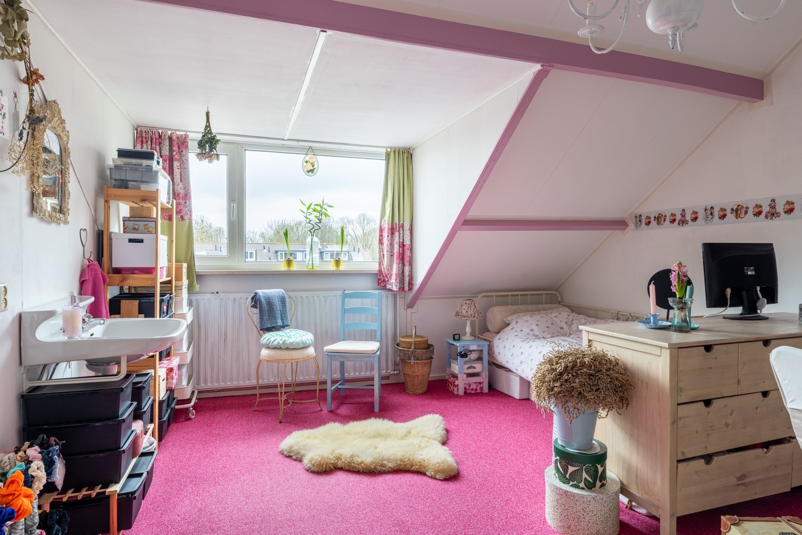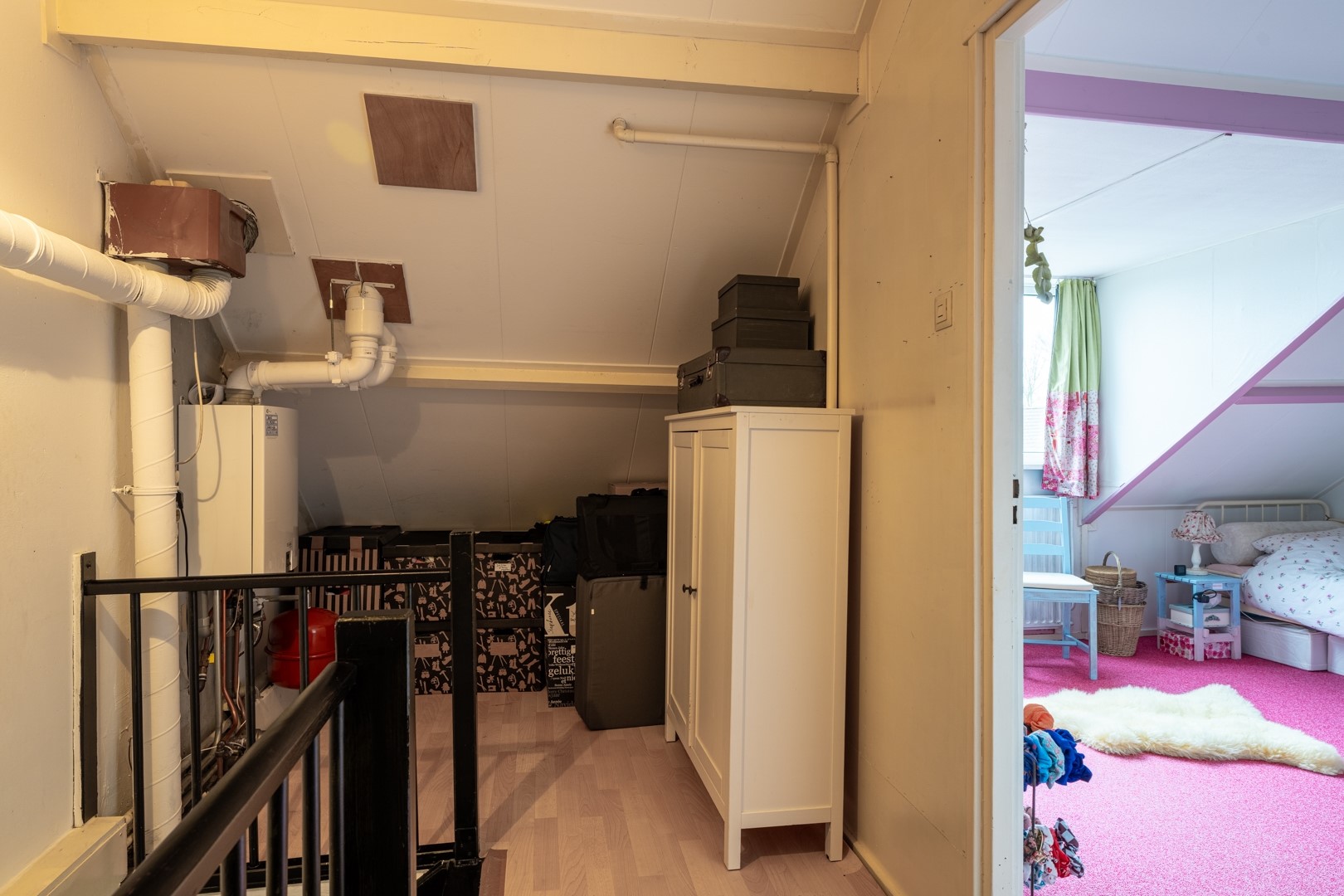 De tweede verdieping verrast met een ruime multifunctionele zolderkamer, voorzien van een dakkapel die zorgt voor extra licht en ruimte. Daarnaast is er een overloop met de cv-ketel en mechanische ventilatie. Achter het knieschot vind je praktische bergruimte en de aanwezige wastafel maakt deze verdieping extra veelzijdig.